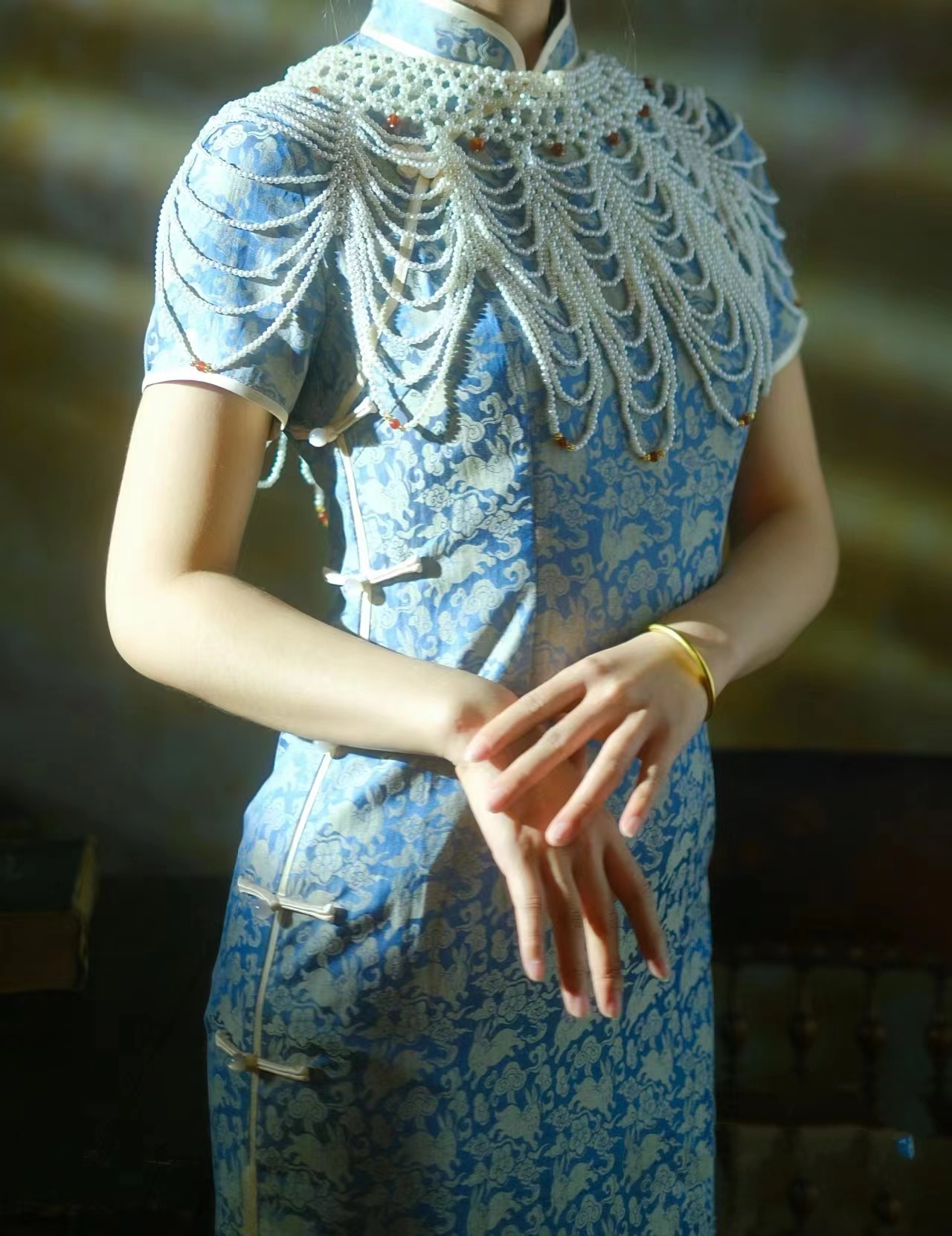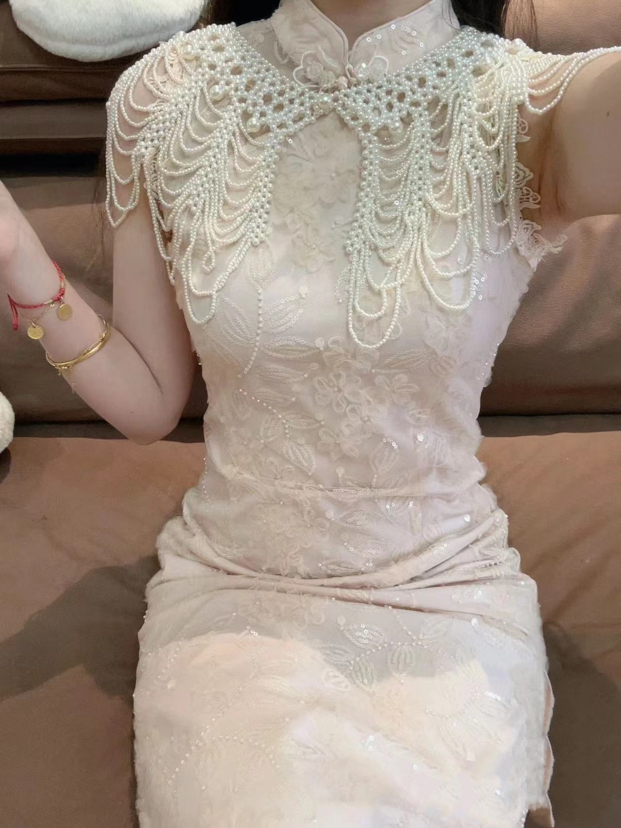 珍珠云肩搭配敬酒服旗袍专用披肩