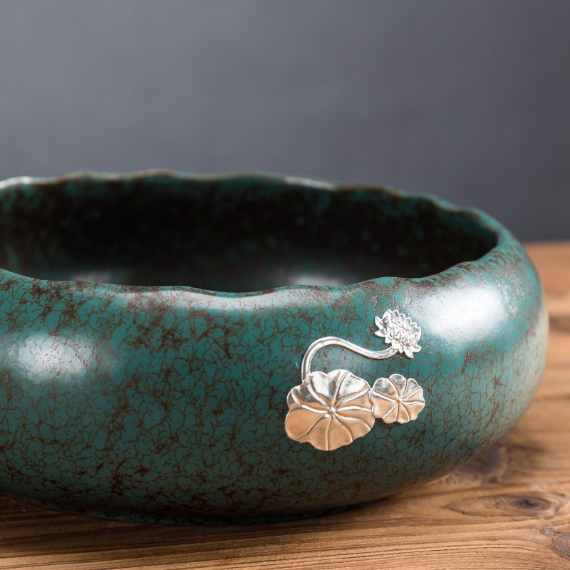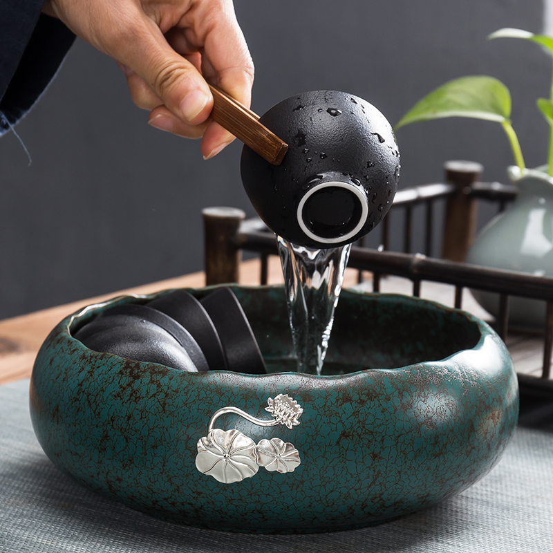 黛绿釉大号陶瓷茶洗水盂杯洗茶渣缸水洗日式功夫茶具茶道配件建水