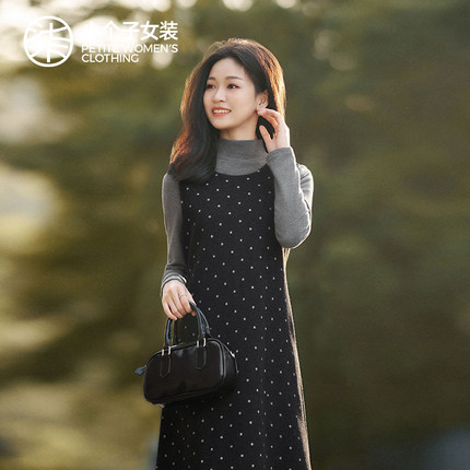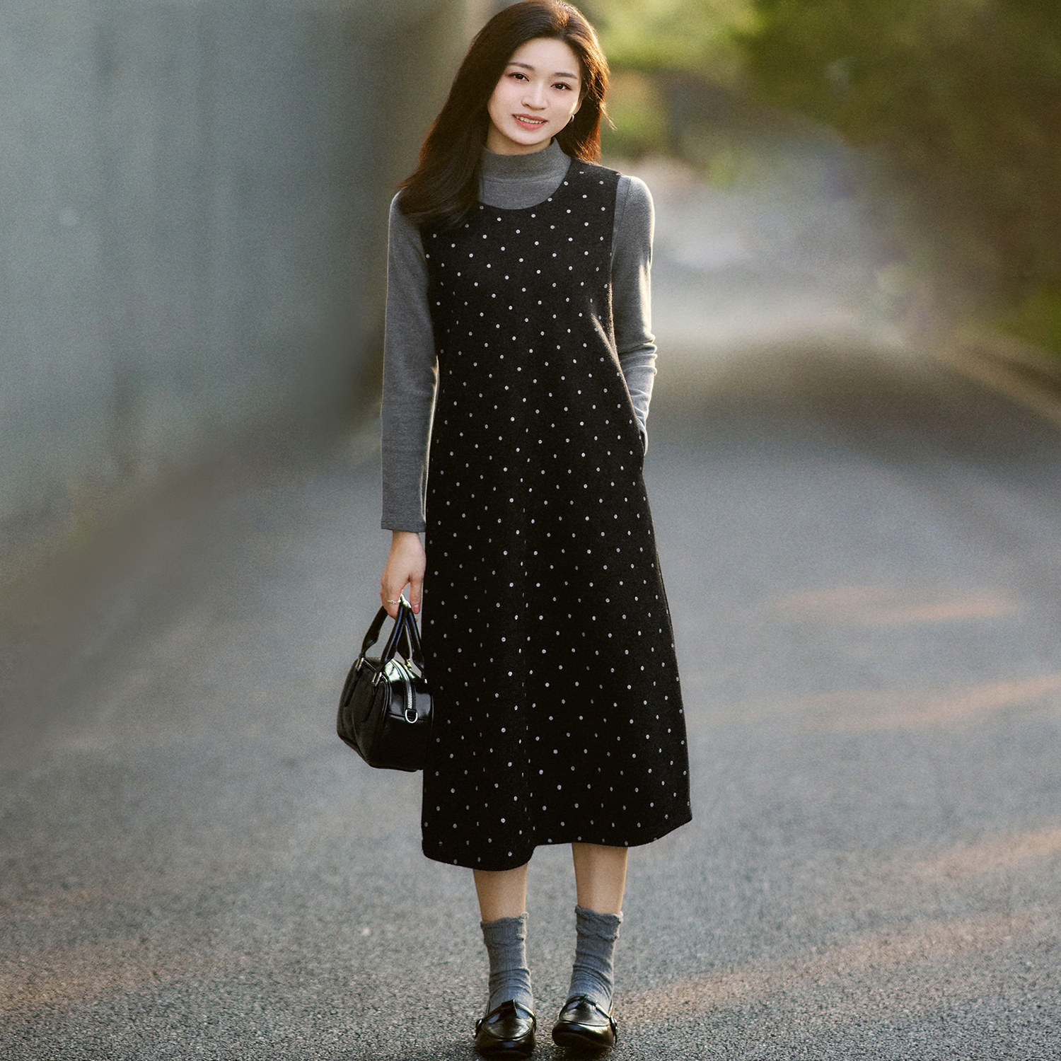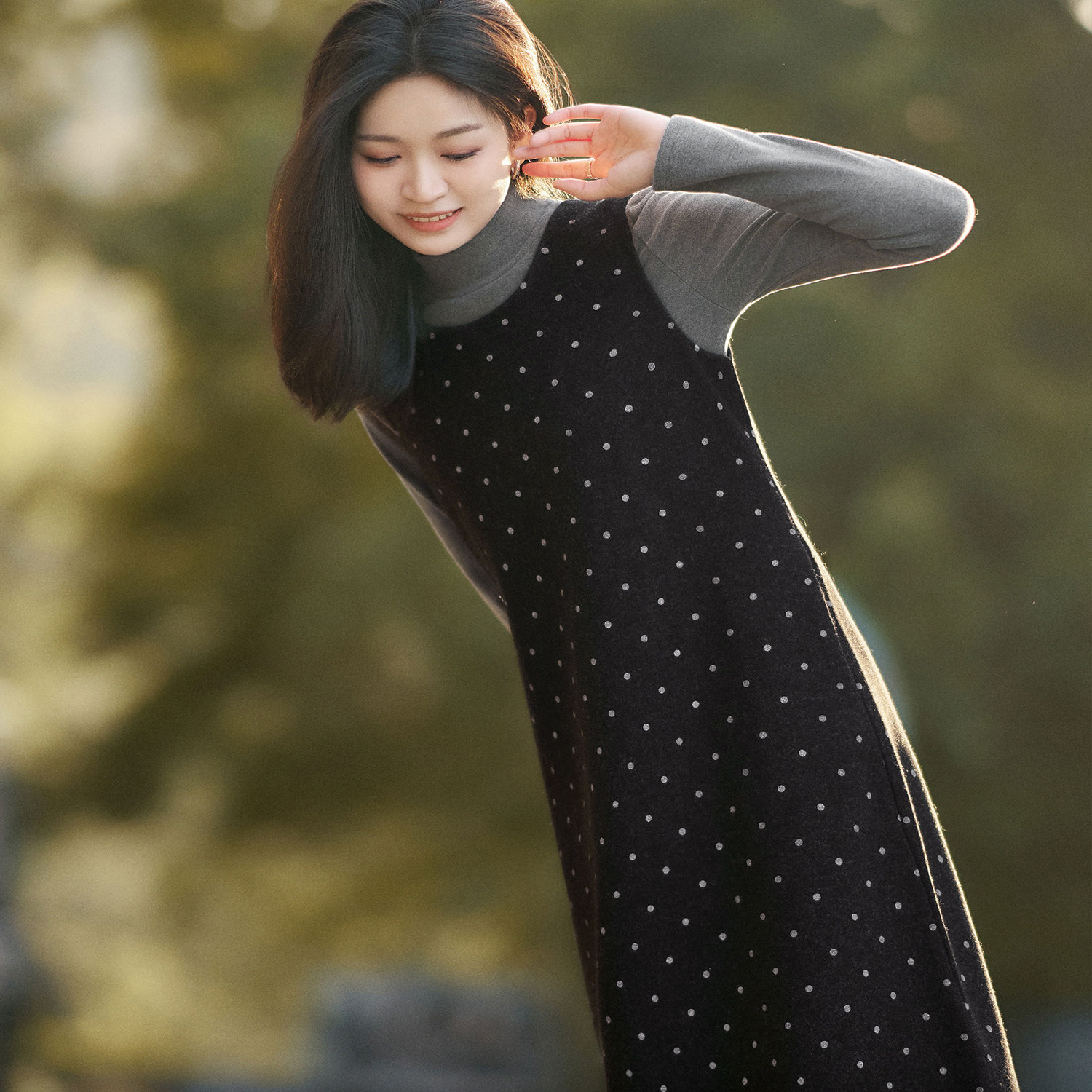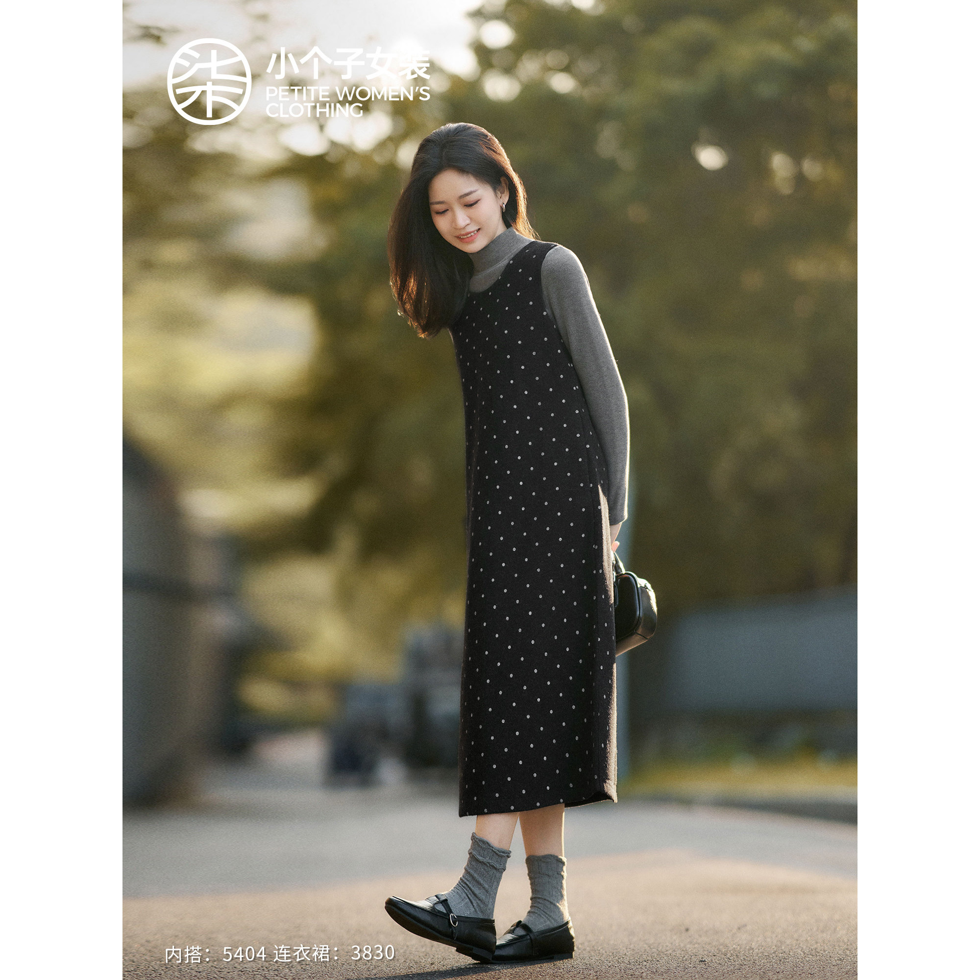 柒量一裁小个子黑色波点背心连衣裙巨好看连身裙106-107cm3830