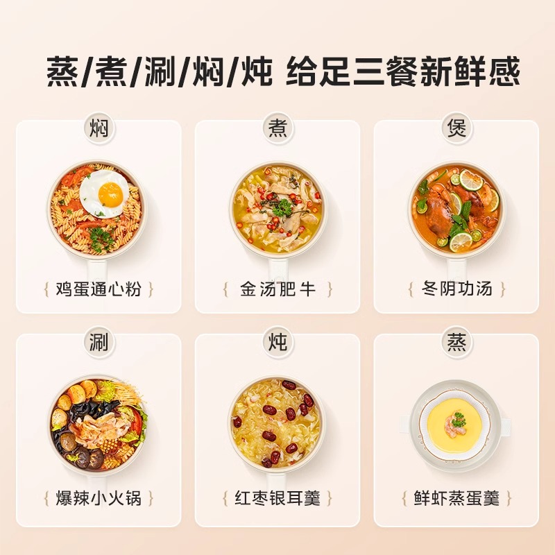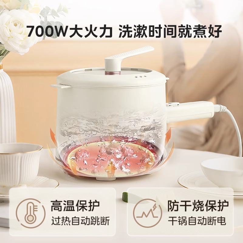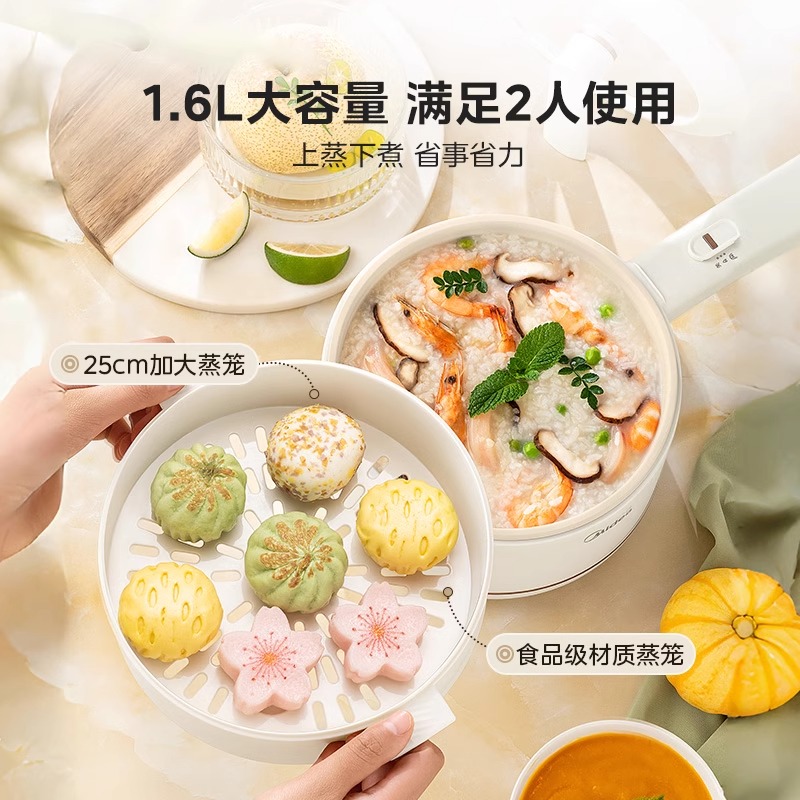美的电煮锅小型迷你火锅学生宿舍泡面不粘锅家用多功能蒸煮小电锅