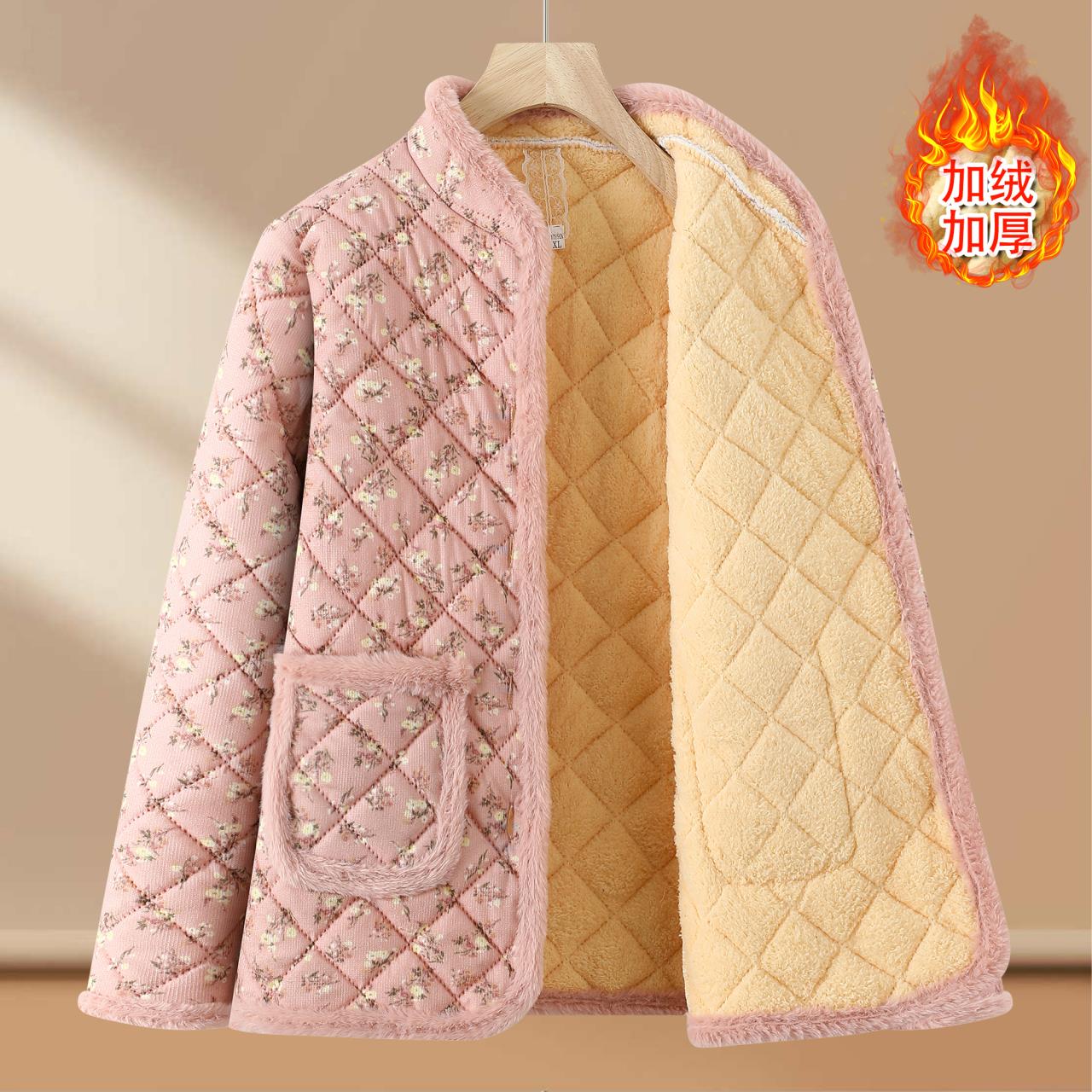 妈妈秋冬加绒加厚外套2025新款中老年人女冬装奶奶小棉袄短款棉衣