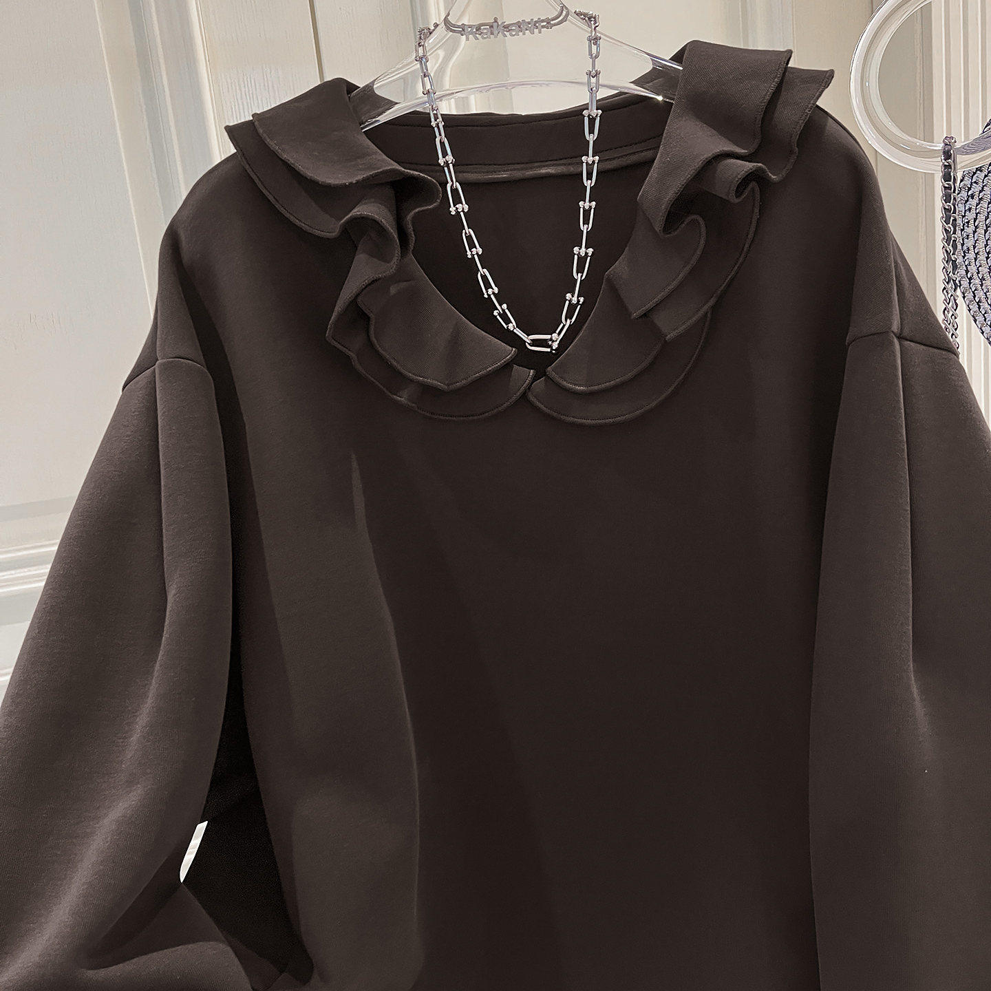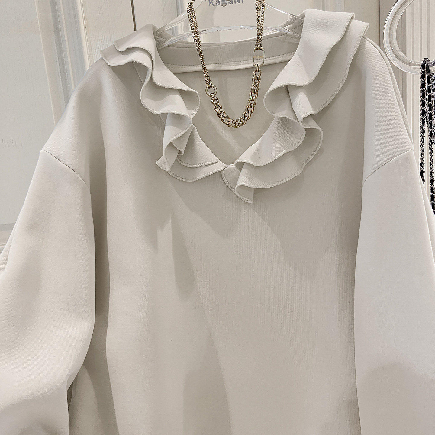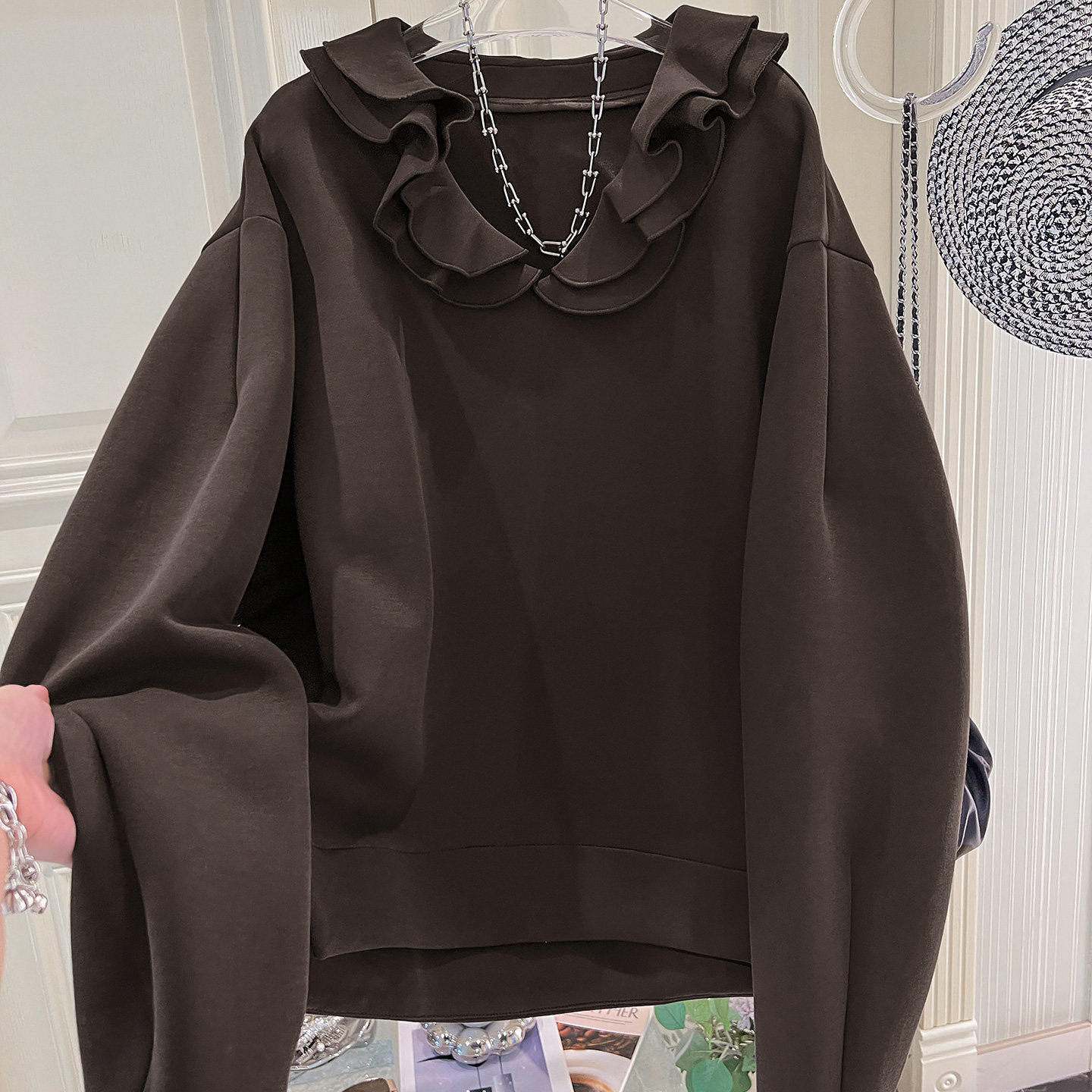 2026春装新款 轻法式减龄时尚洋气花苞领套头杏色卫衣女K3405