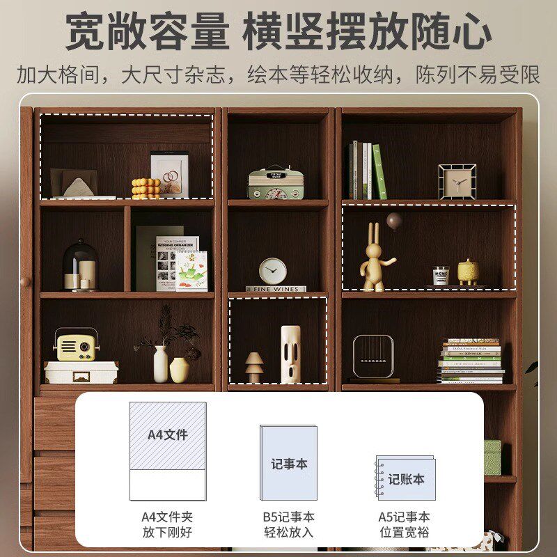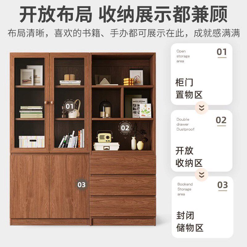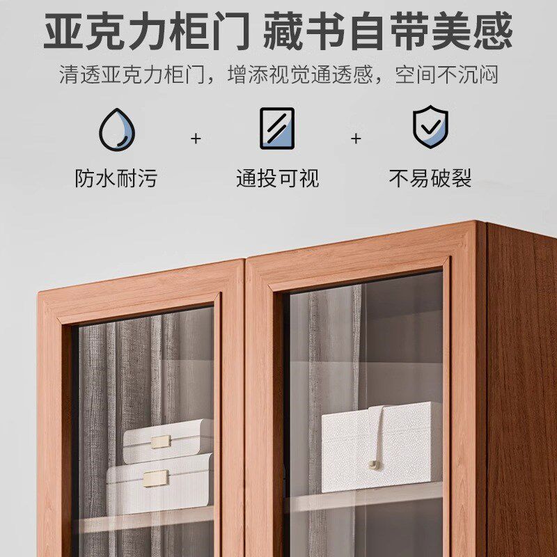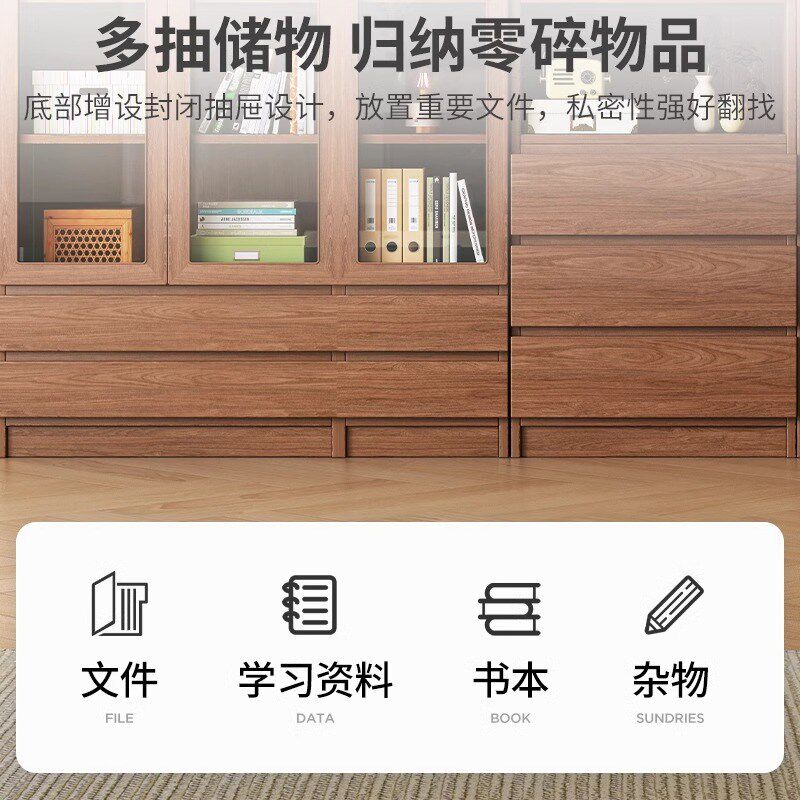 速发实木书柜理玻璃柜门家用卧儿室童组合收纳整带柜学生书橱书房