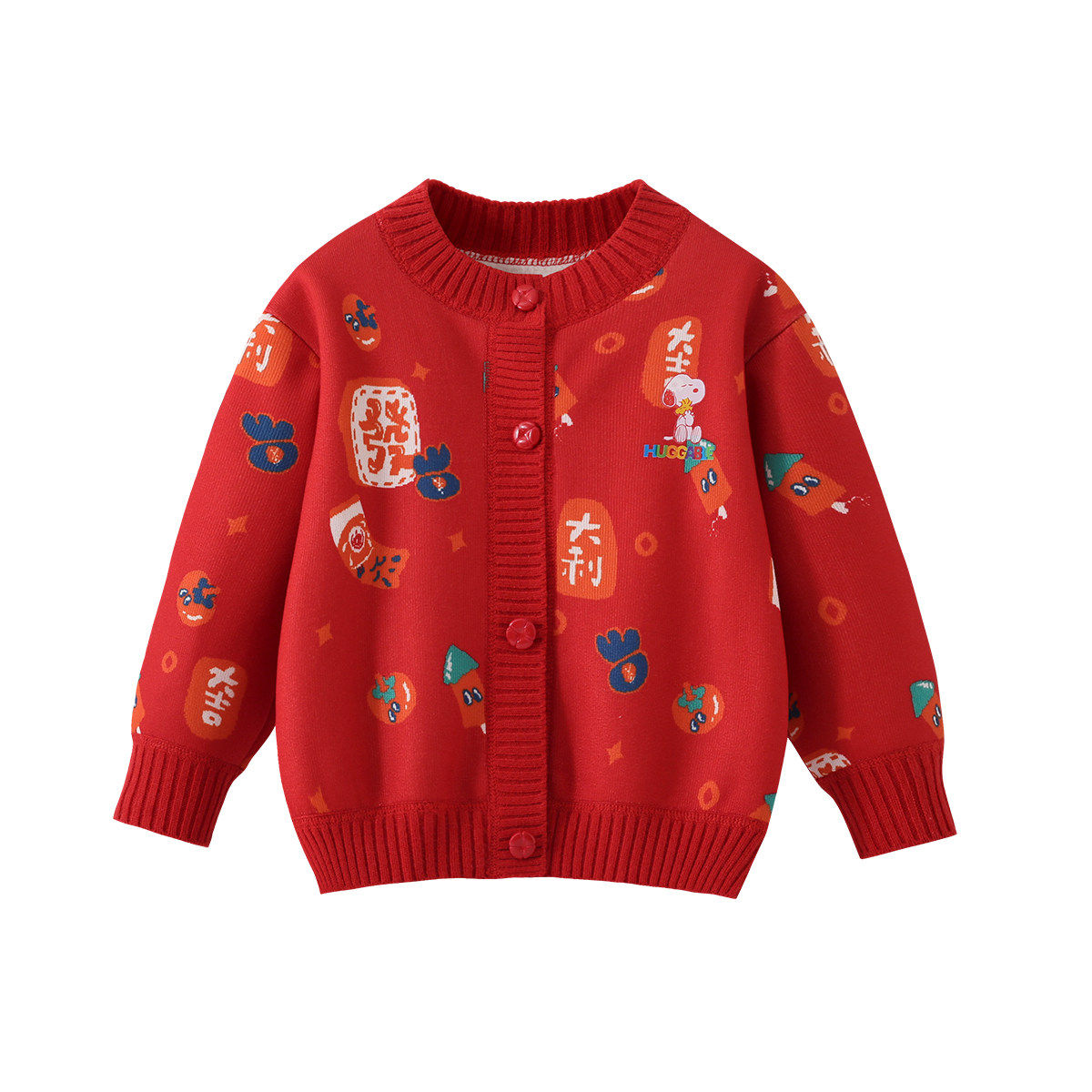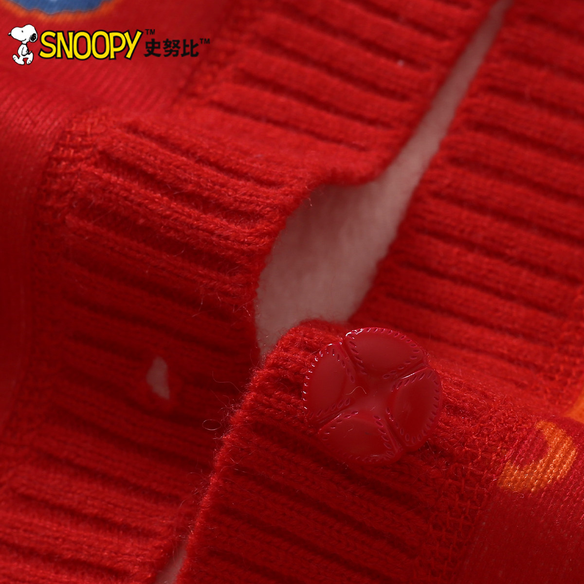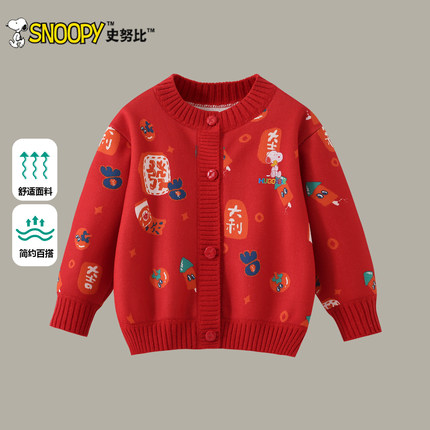 史努比女童毛衣开衫2025新款男童红色针织衫儿童春秋外套童装上衣