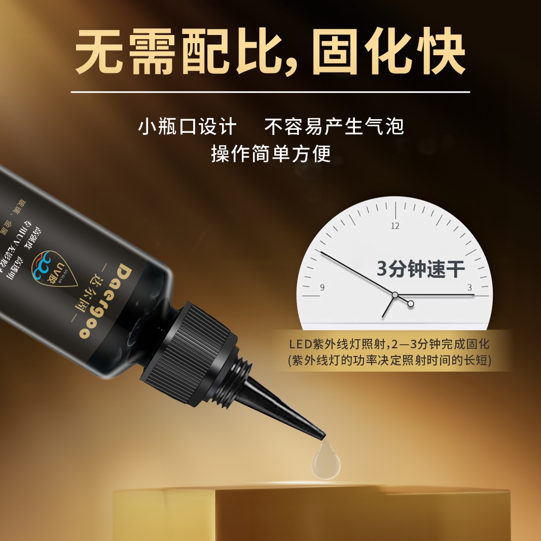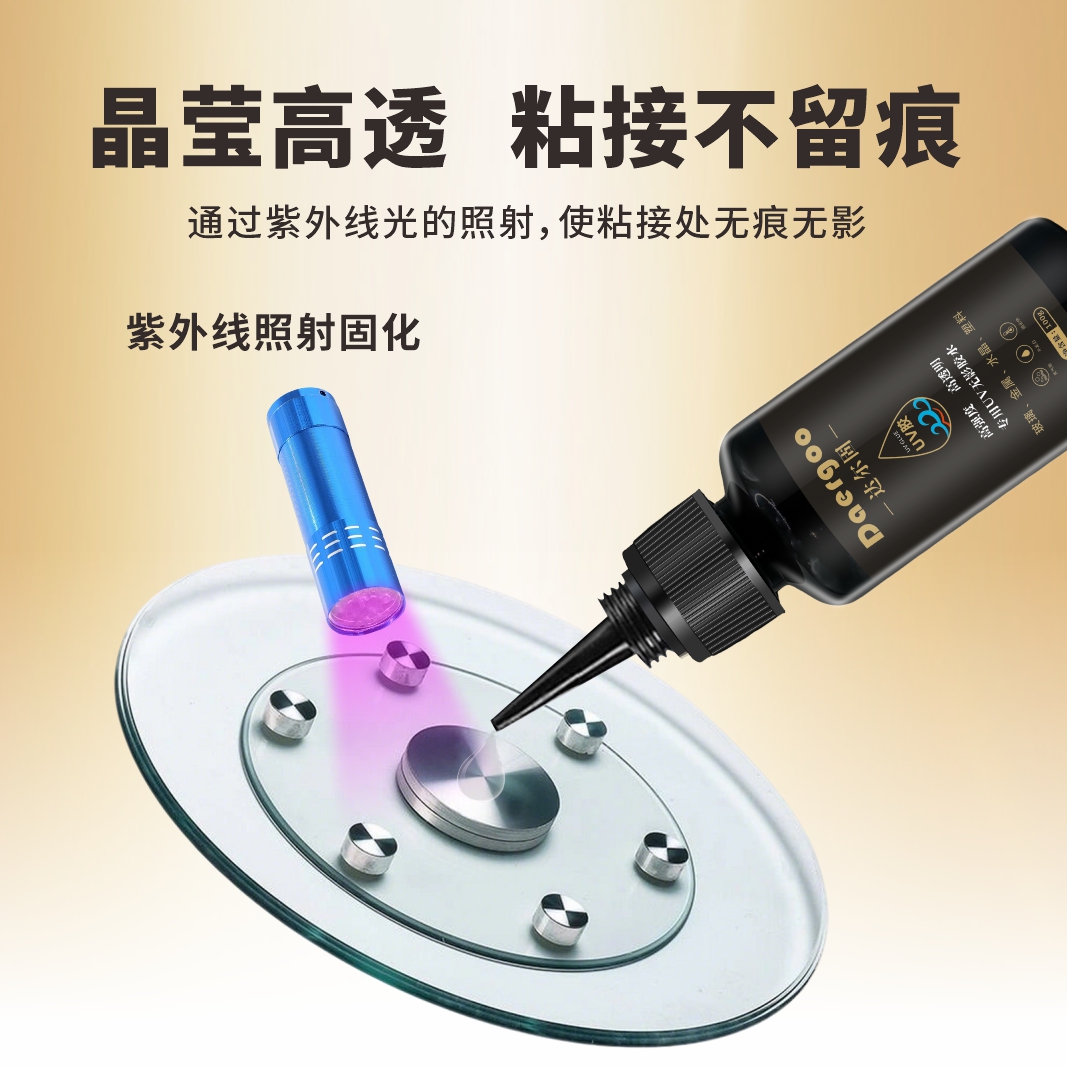 UV无影胶水达尔固粘钢化玻璃金属茶几水晶装饰吊灯玻璃奖杯紫外线固化粘合剂透明亚克力专用快干强力无痕胶水