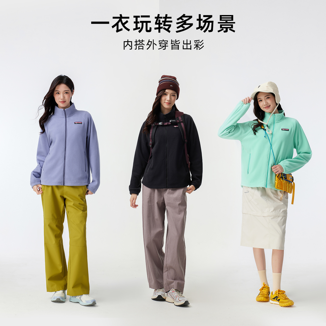 骆驼户外立领抓绒衣女双面加绒保暖抗静电徒步防风摇粒绒外套男