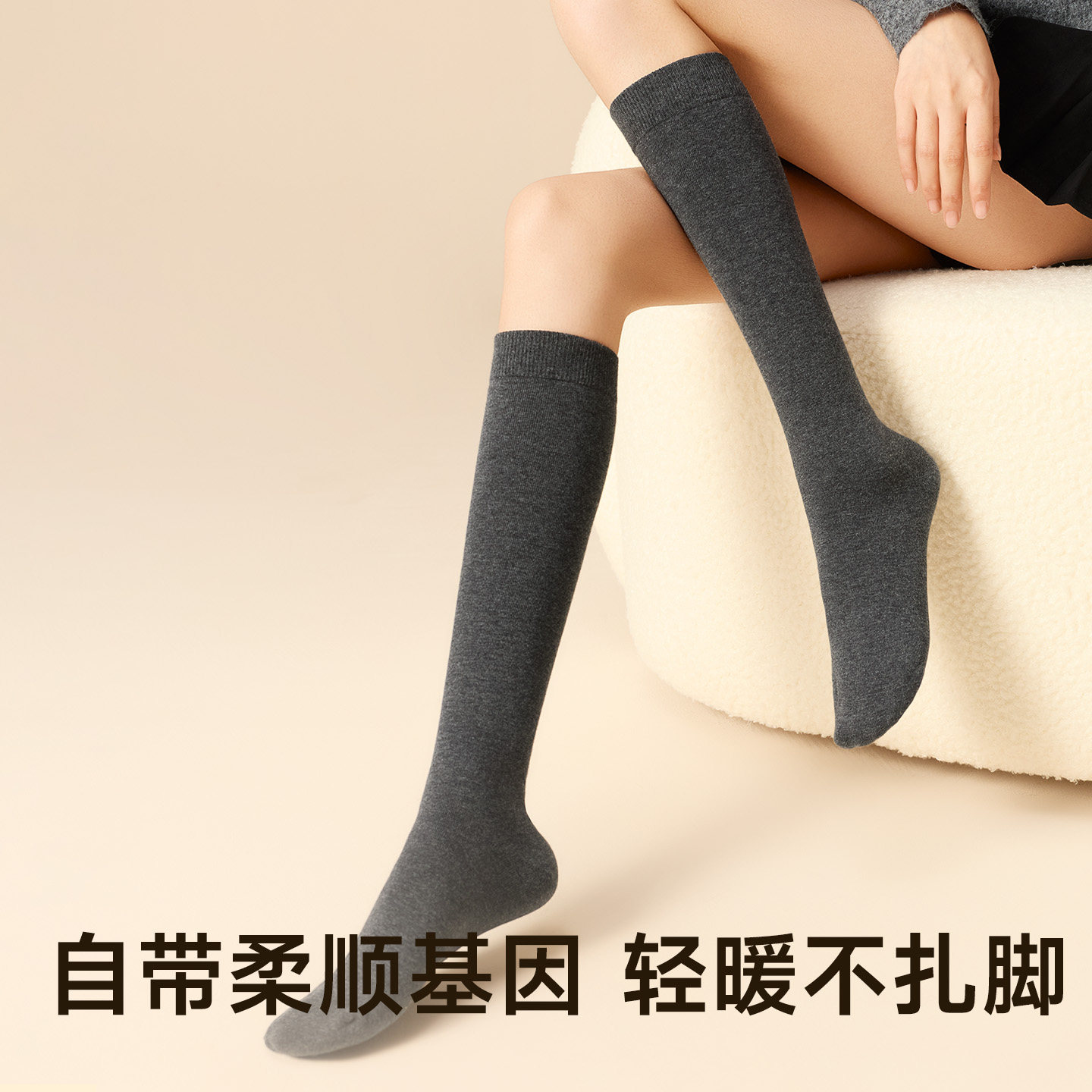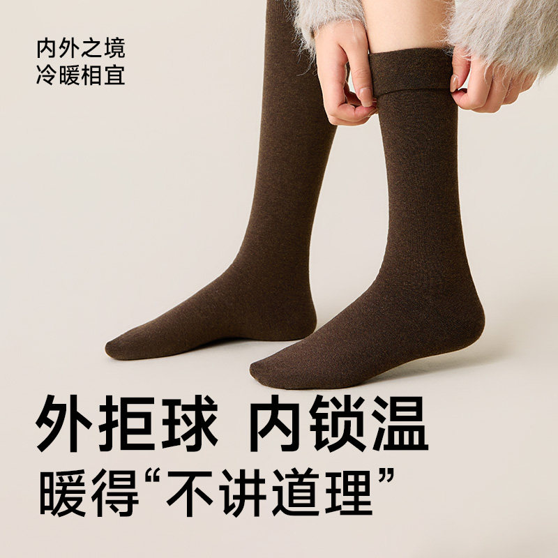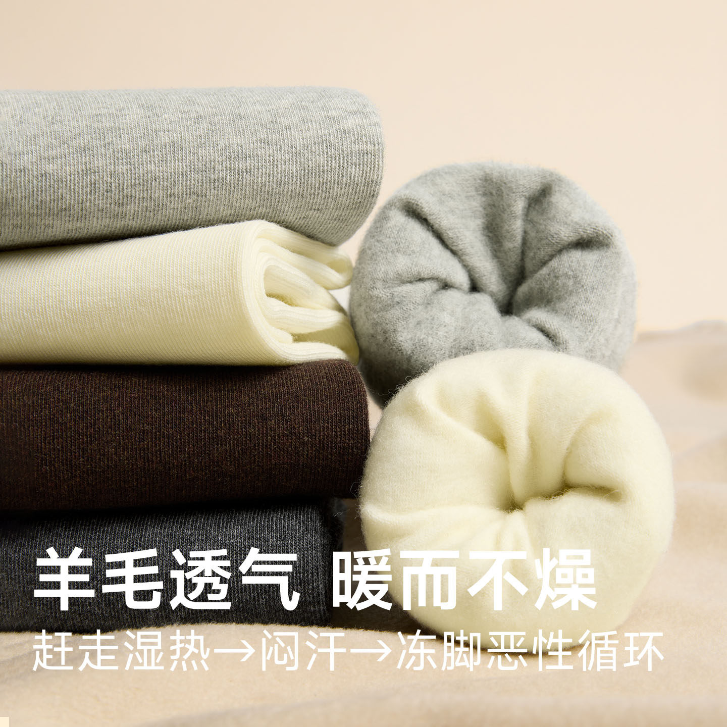 羊毛小腿袜子女款冬季加绒加厚美利奴保暖配小皮鞋不掉长筒棉袜