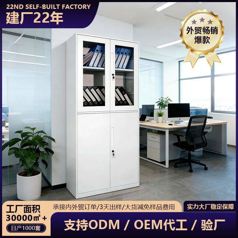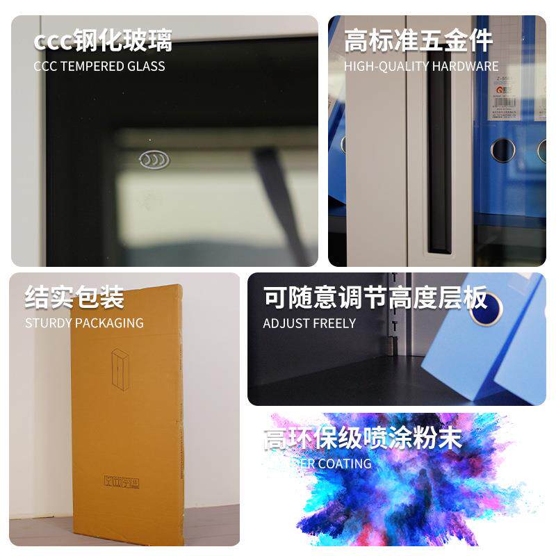 办公室tfczwjg0加厚大容量财收纳凭门证玻璃带锁铁皮储物柜拆务装