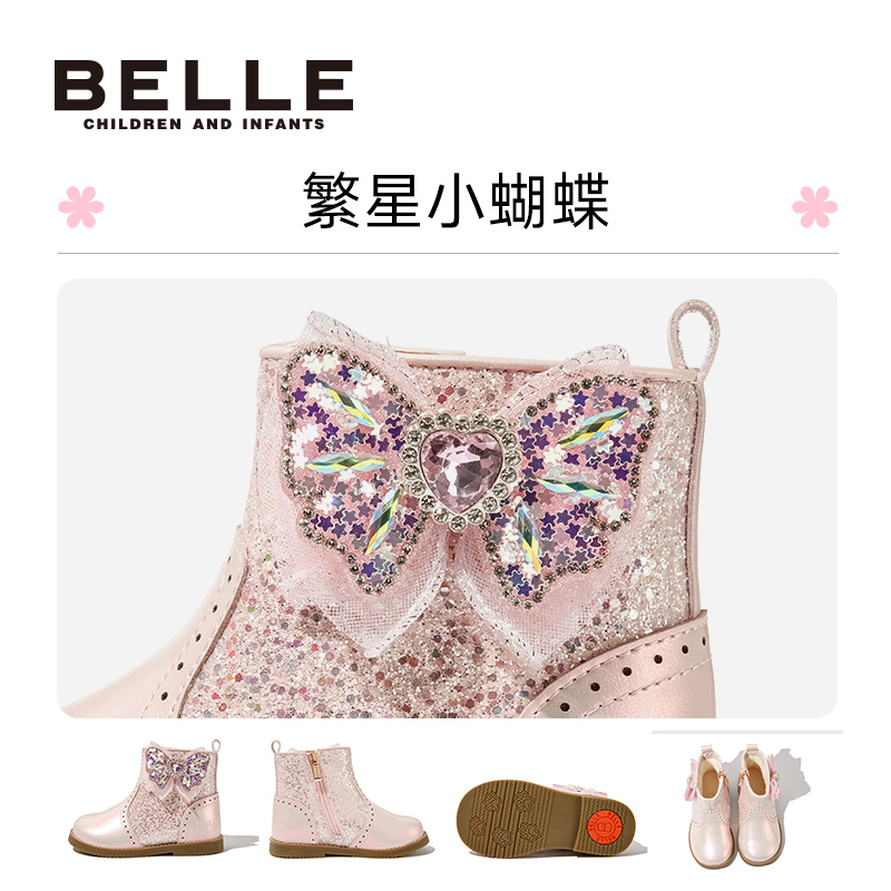繁星丨百丽童鞋女童公主靴儿童短靴秋冬加绒女宝小皮靴子女孩雪靴