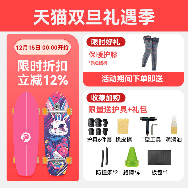 菠萝君路冲板儿童初学者免蹬地陆地冲浪板弹簧桥户外滑板车专业板
