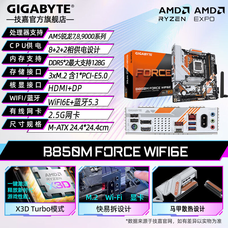 技嘉超耐久B850M冰小雕妹电竞雕冰猎鹰战鹰魔鹰X猎鹰电竞游戏主板