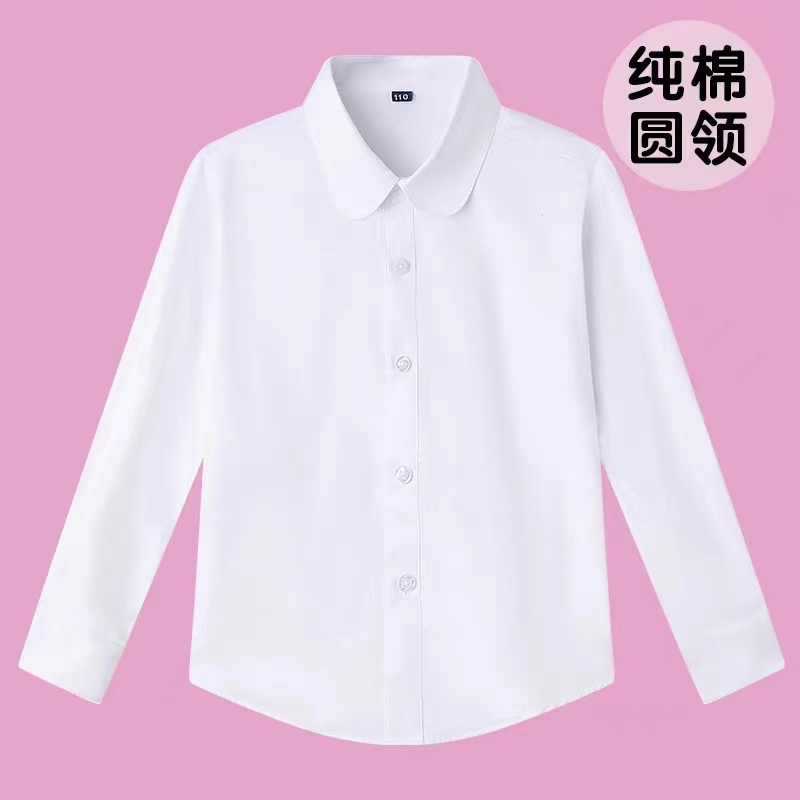 儿童白衬衫长袖男童女童纯棉中小学生校服中大童白色衬衣表演出服