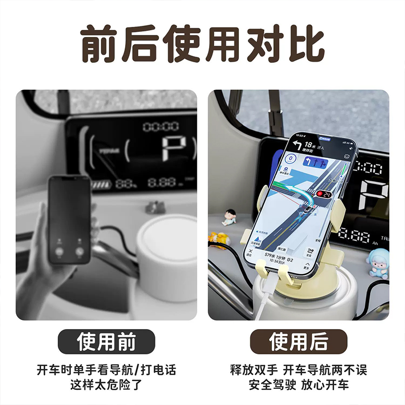 三轮车手机支架雅迪爱玛电动车汽车吸盘防抖防震手机导航架通用