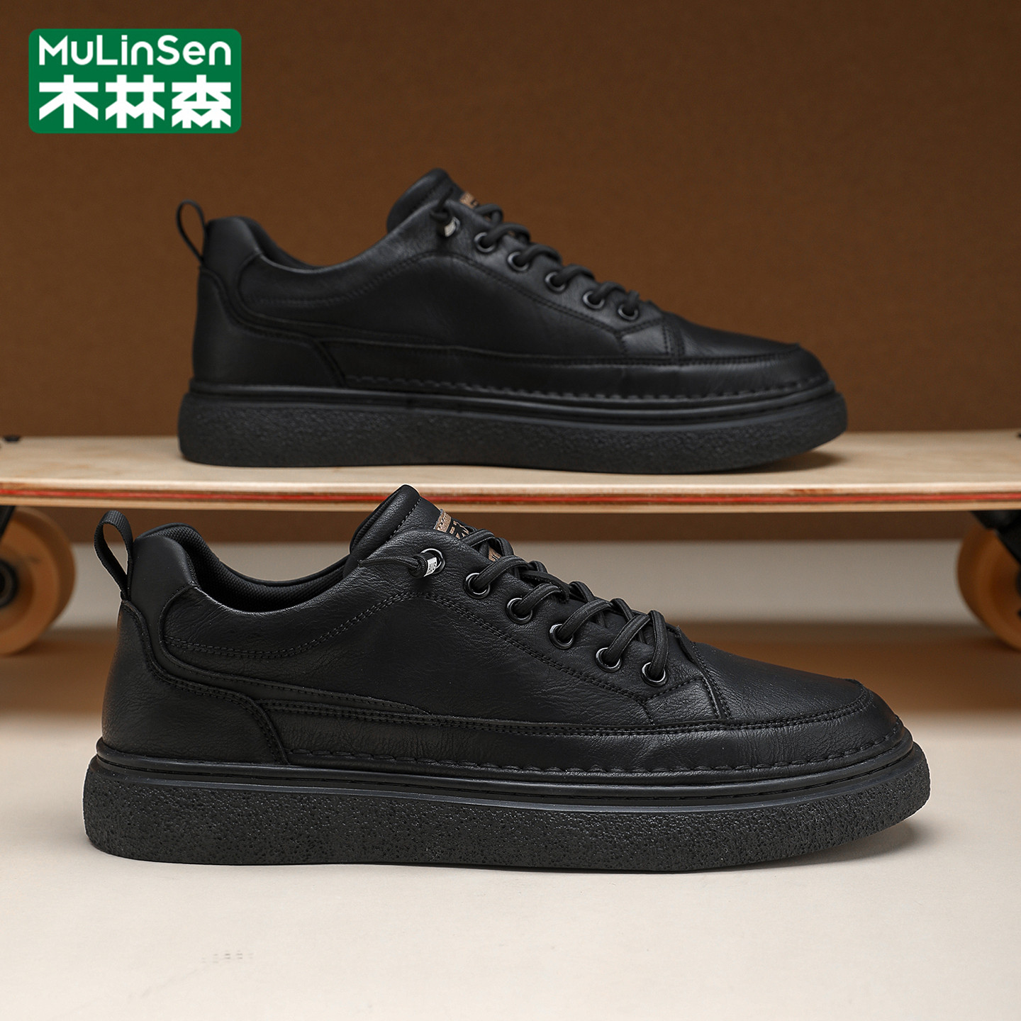 木林森男鞋2025冬季休闲运动商务真皮板鞋一脚蹬黑色工作上班皮鞋