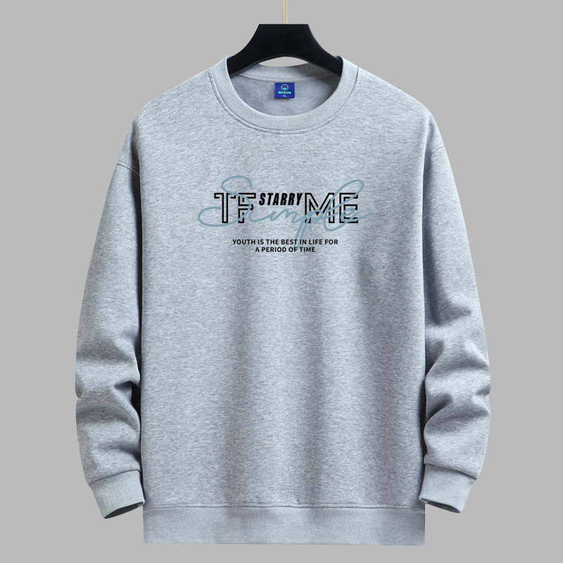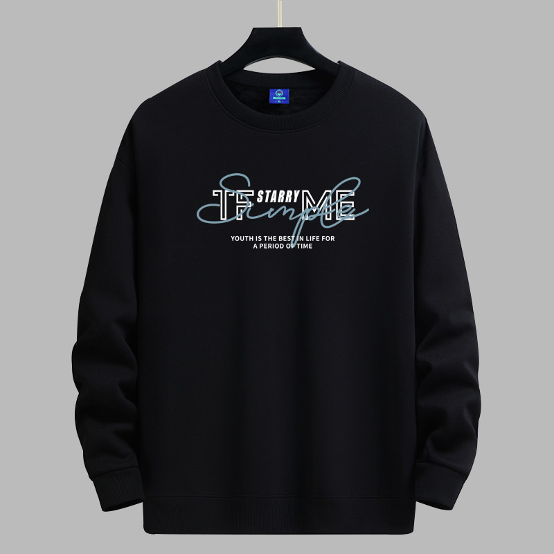 加绒加厚春秋纯棉卫衣男士长袖T恤打底衫潮圆领无帽套头男装上衣