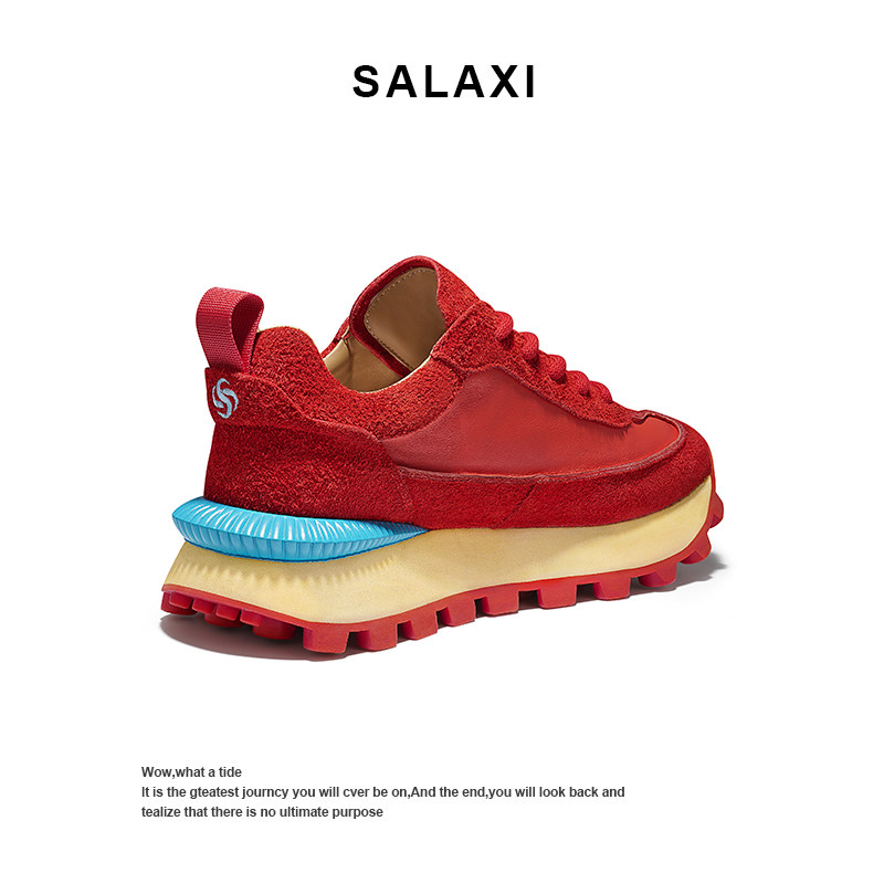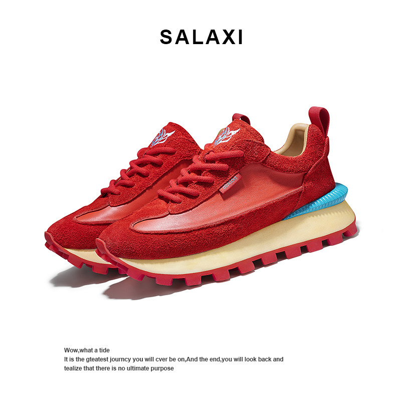 Salaxi/莎莱茜复古轻奢褶皱低帮运动阿甘鞋男女时尚厚底休闲鞋