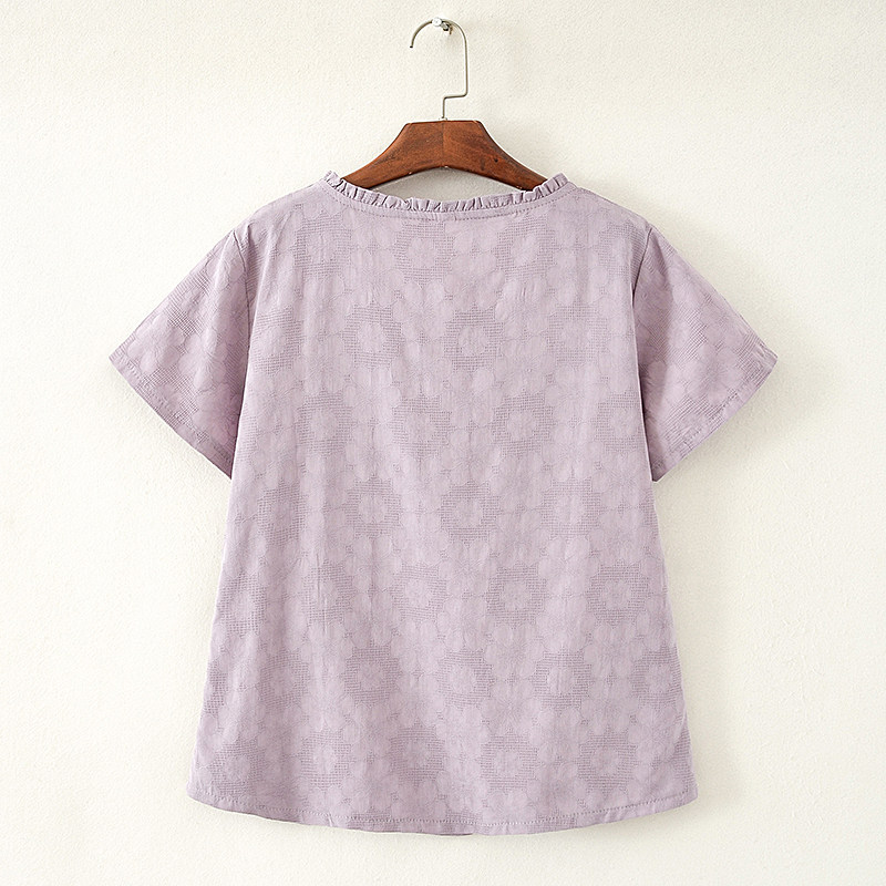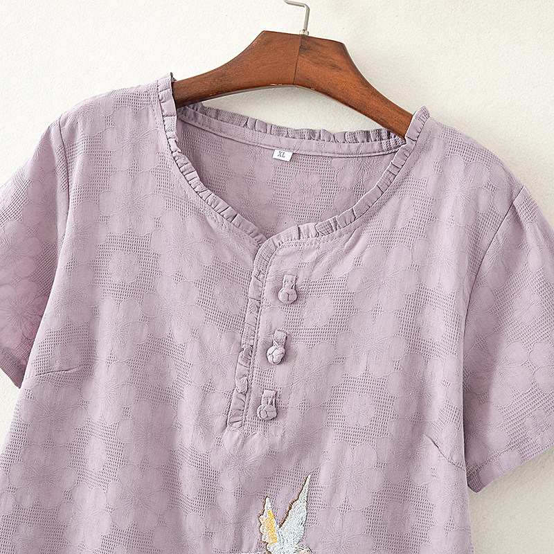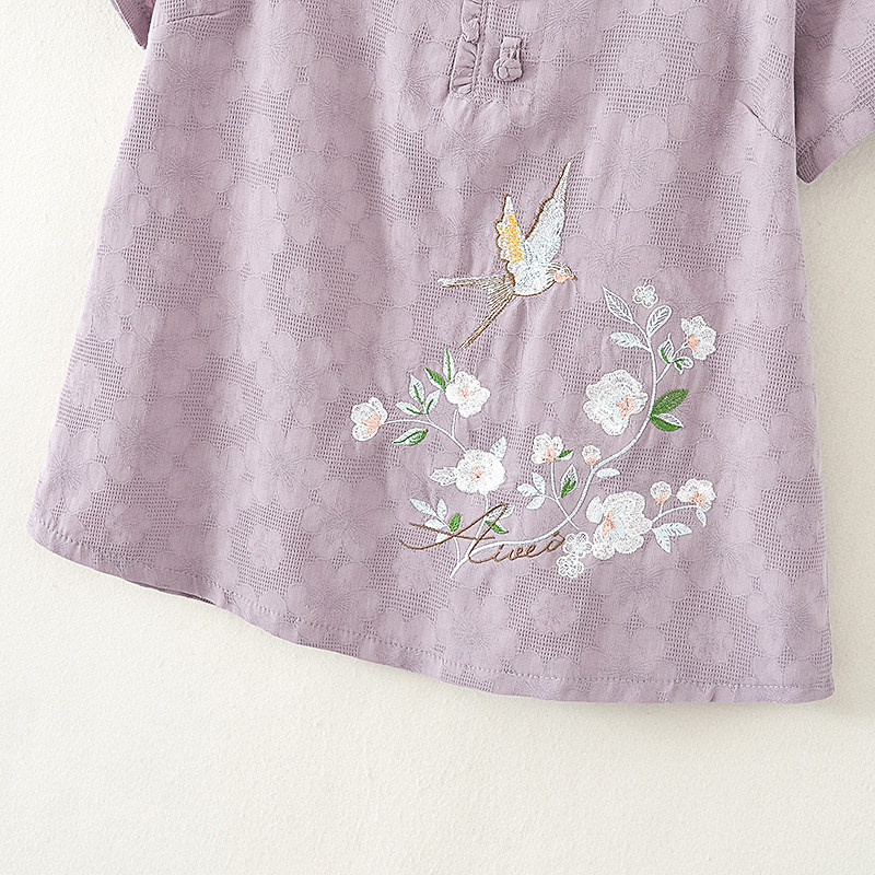 绣花t恤女棉麻小衫妈妈夏装大码洋气上衣中老年宽松薄款短袖体恤