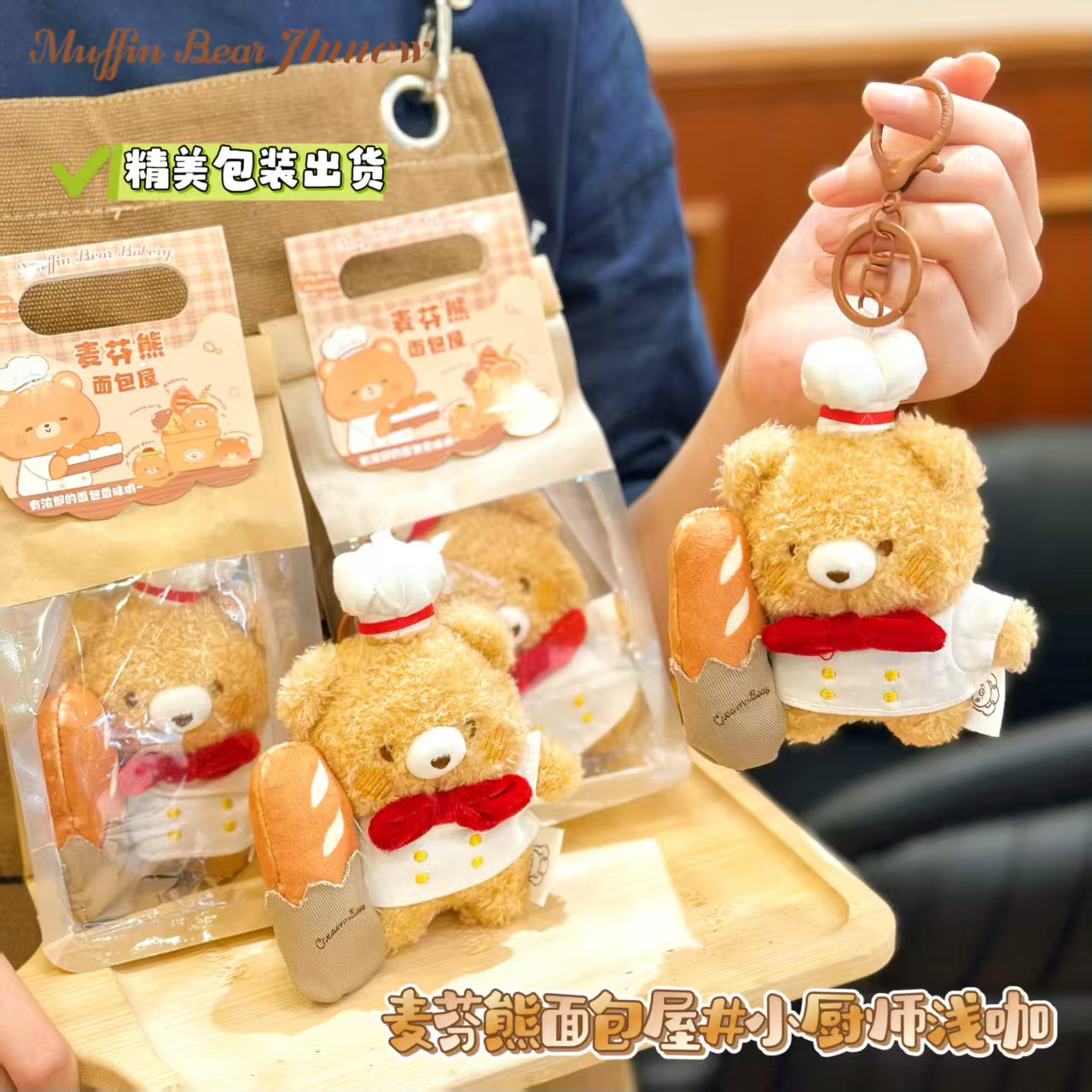 可爱麦芬熊面包屋系列挂件毛绒玩具面包小熊玩偶公仔送儿童礼物