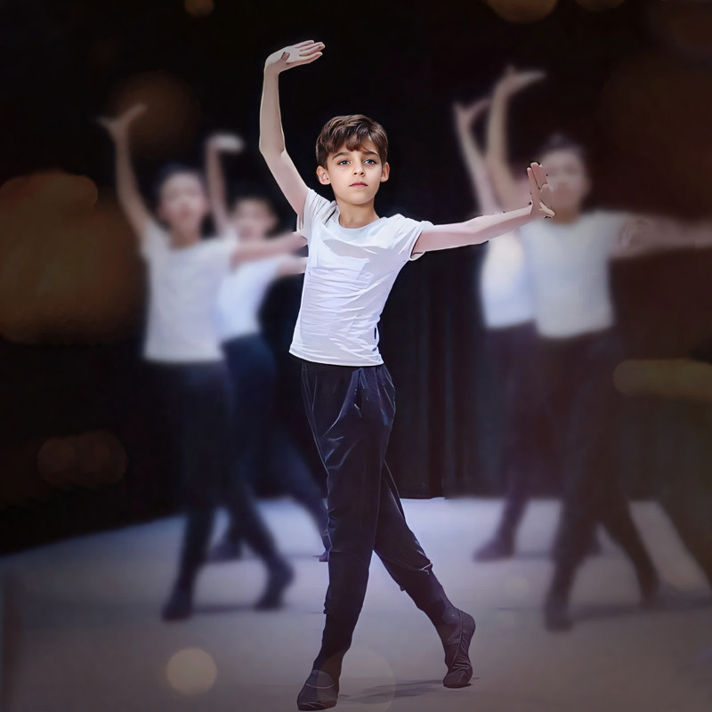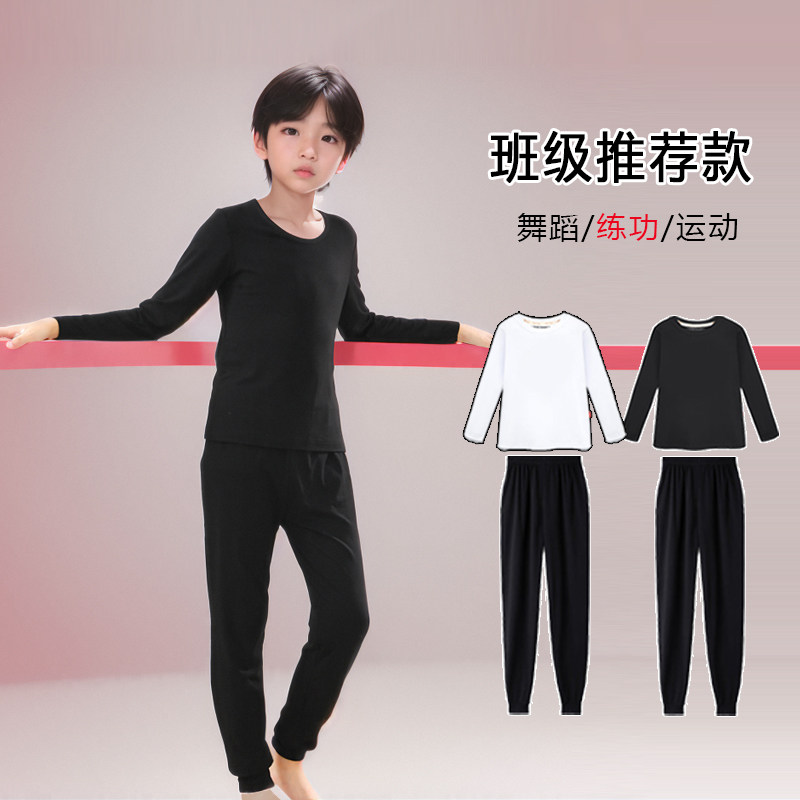 男童舞蹈服芭蕾练功服秋冬长裤黑色形体服男孩拉丁中国舞训练上衣