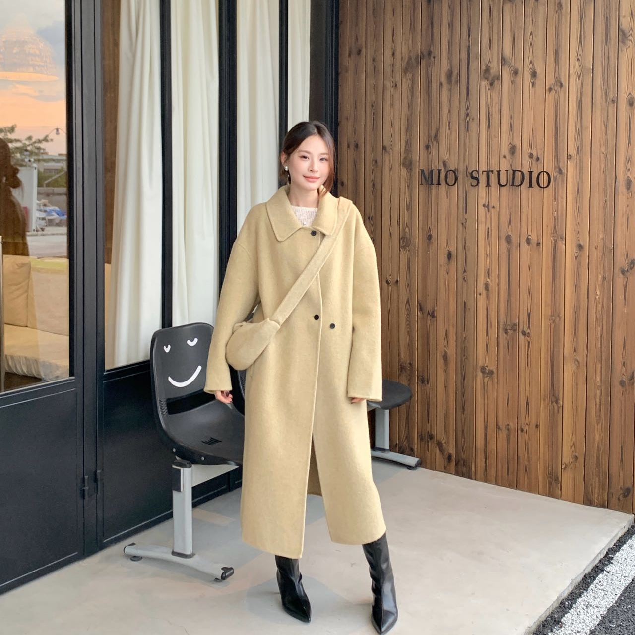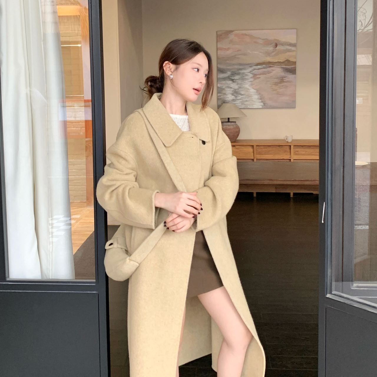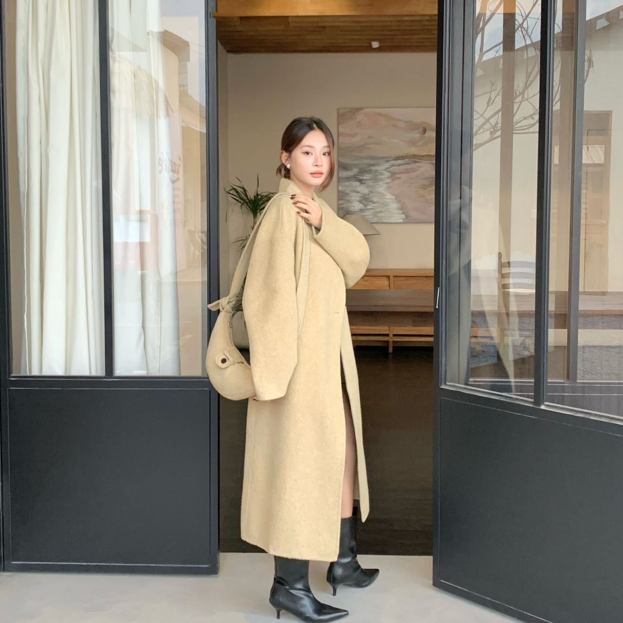 2025秋冬新款斜跨包双面羊绒大衣女中长款小个子高端羊毛呢外套女