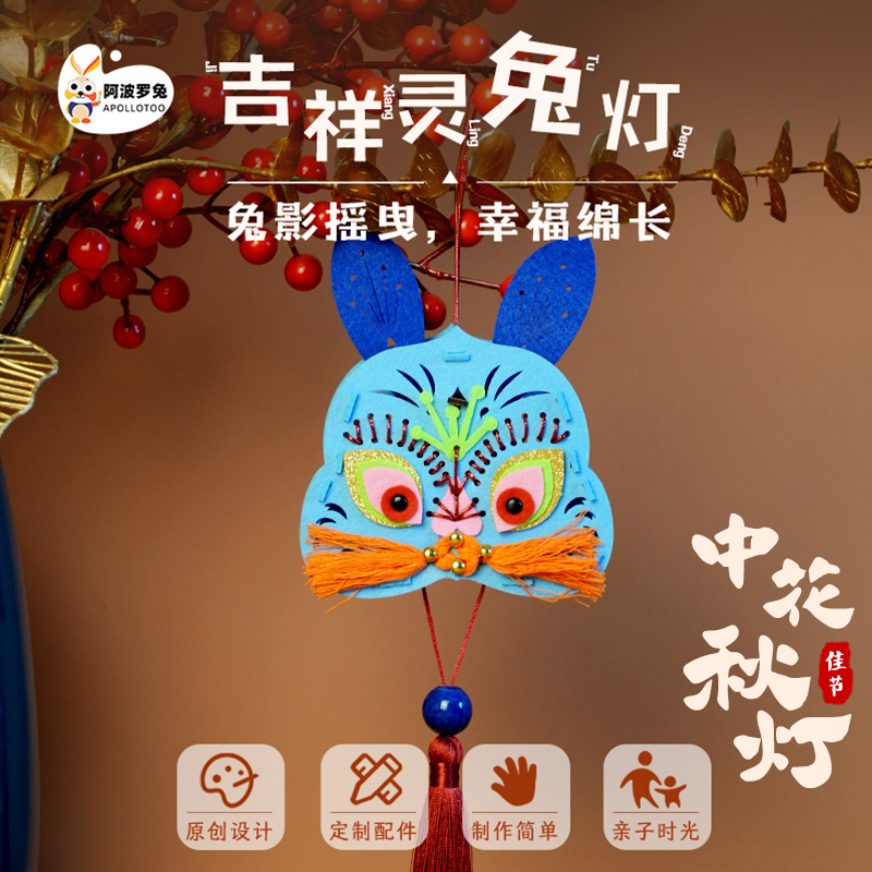 阿波罗兔2025中秋节手工灯笼儿童diy制作材料包手提玉兔子花灯