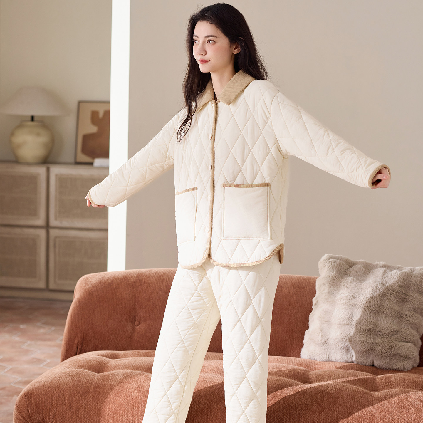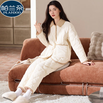 羽绒服三层夹棉防风防水睡衣女士冬季加厚2025新款休闲家居服套装