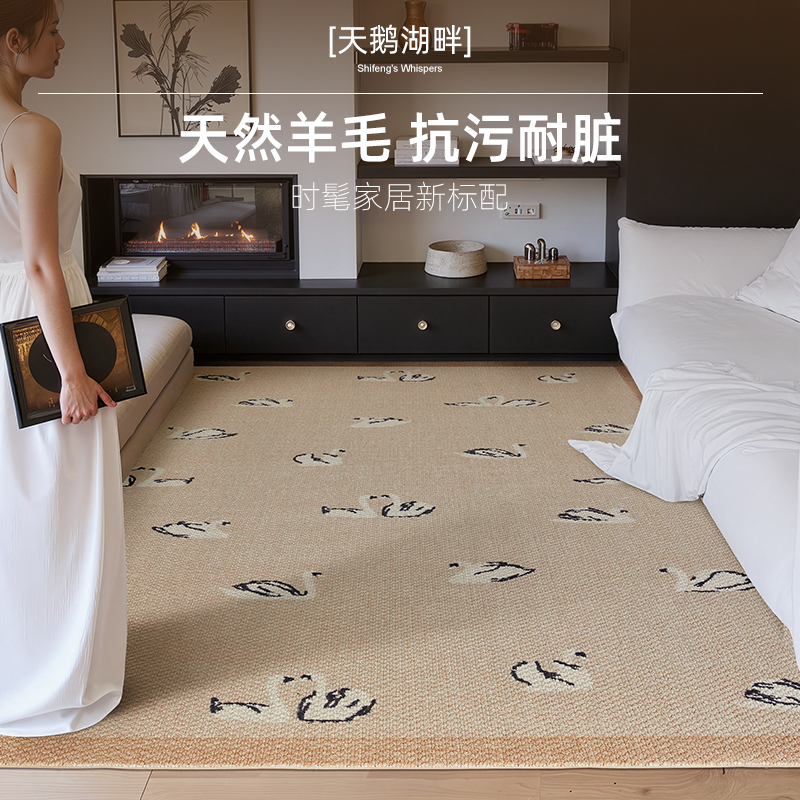 天鹅湖畔进口羊毛客厅地毯2025新款法式浪漫小众卧室沙发耐脏地垫