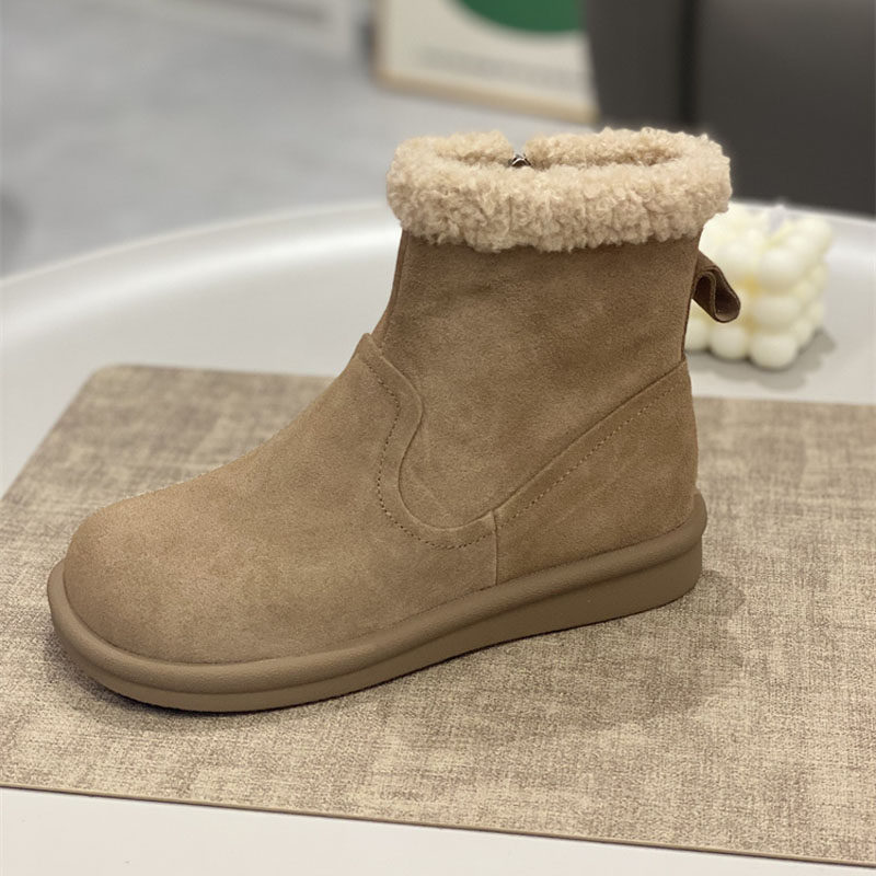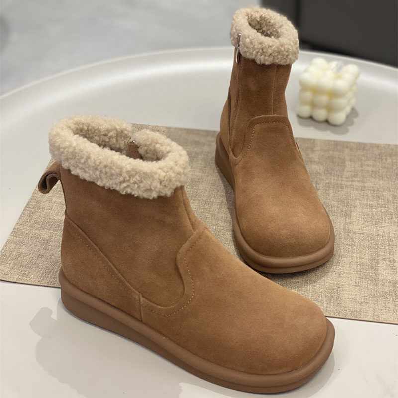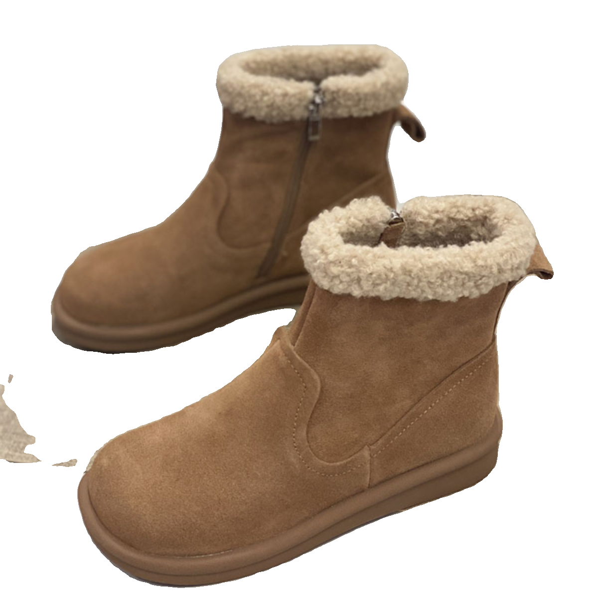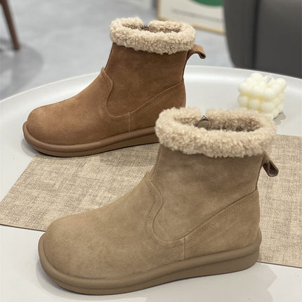 皮毛一体雪地靴女2024冬季新款复古加绒圆头保暖丑萌真皮毛毛棉鞋