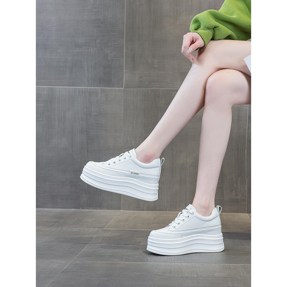 内增高小白鞋女2025春夏新款真皮厚底8cm松糕休闲小个子板鞋单鞋