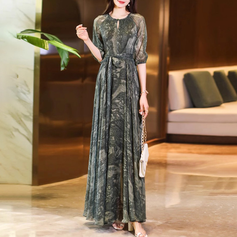 高端时尚妈妈真丝桑蚕丝连衣裙