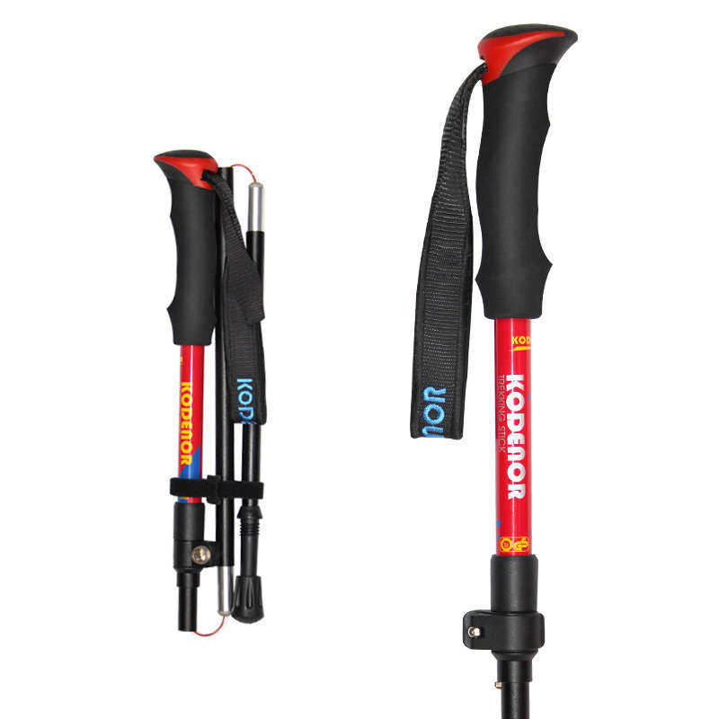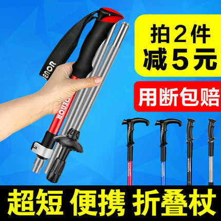 折叠登山杖户外外锁铝合金伸缩碳素手杖徒步超轻短便携杖登山装备