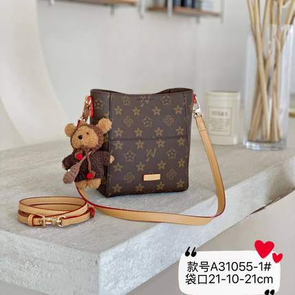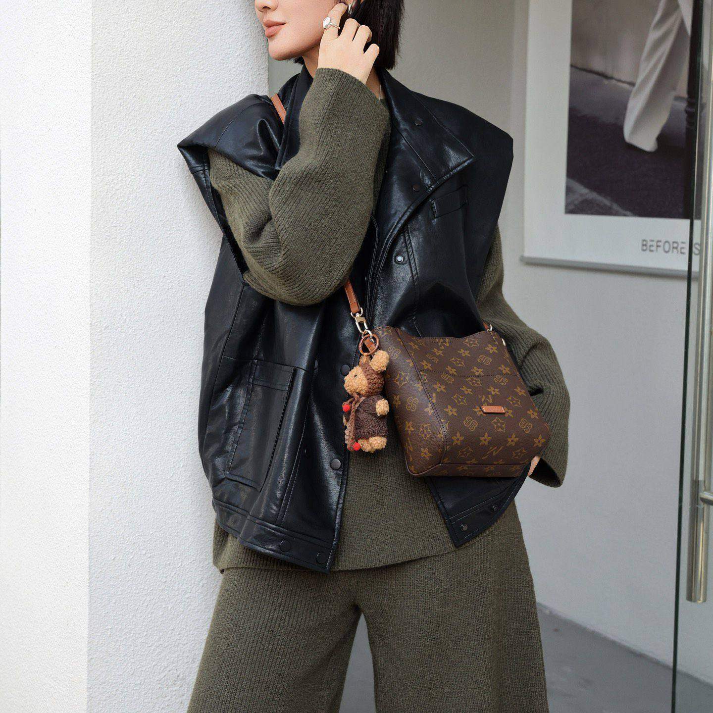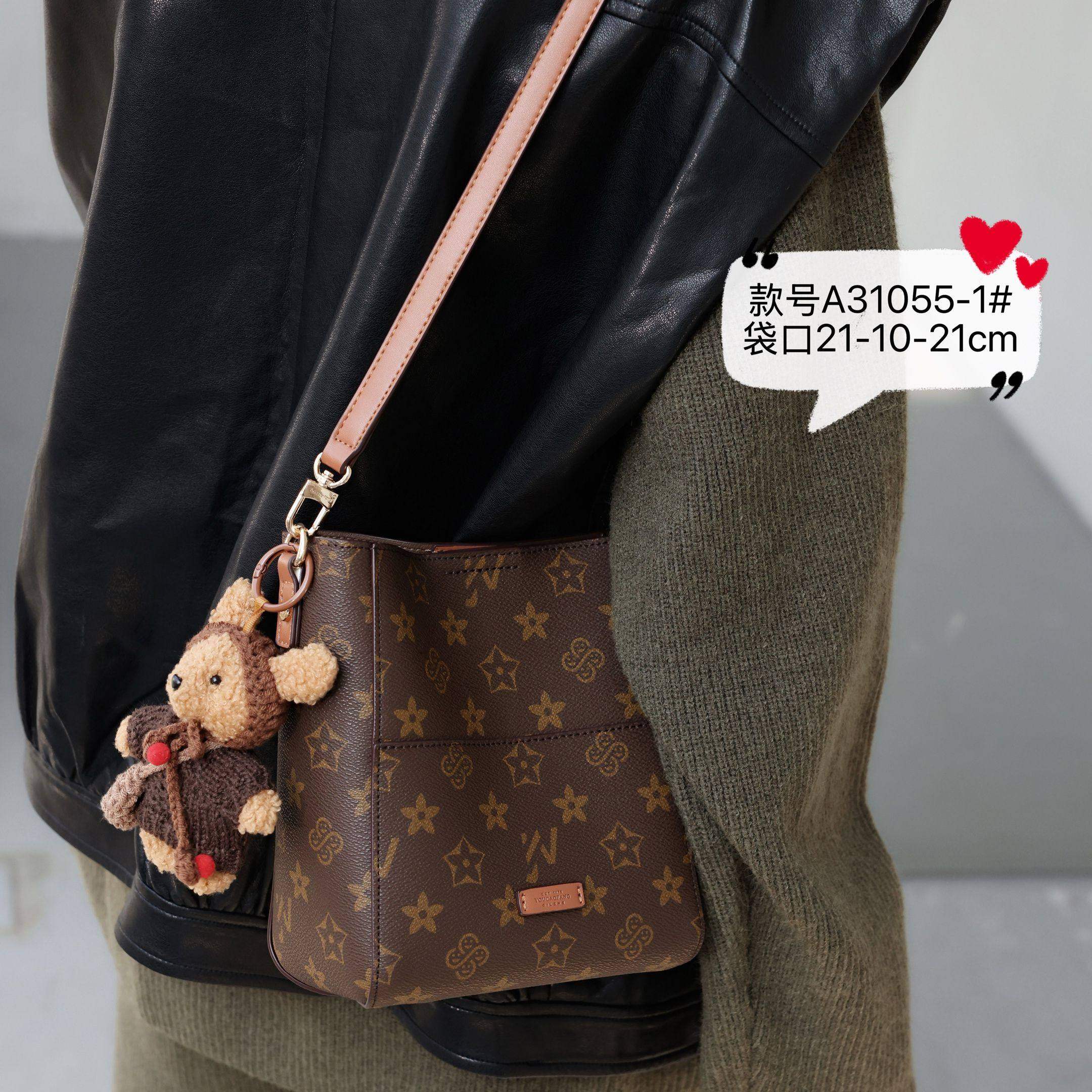 小红书推荐2025新款印花水桶包女时尚百搭单肩斜挎包高级感配小熊