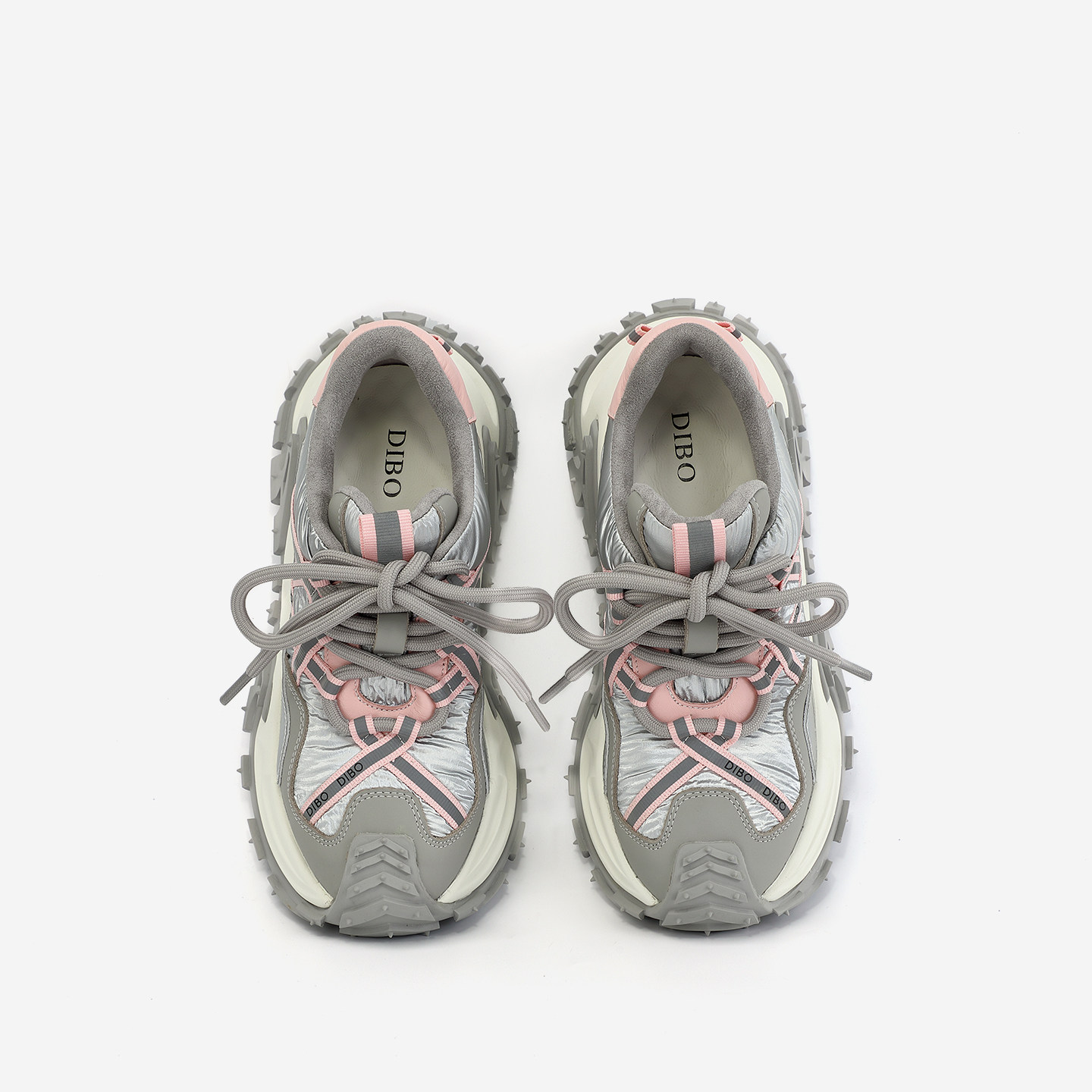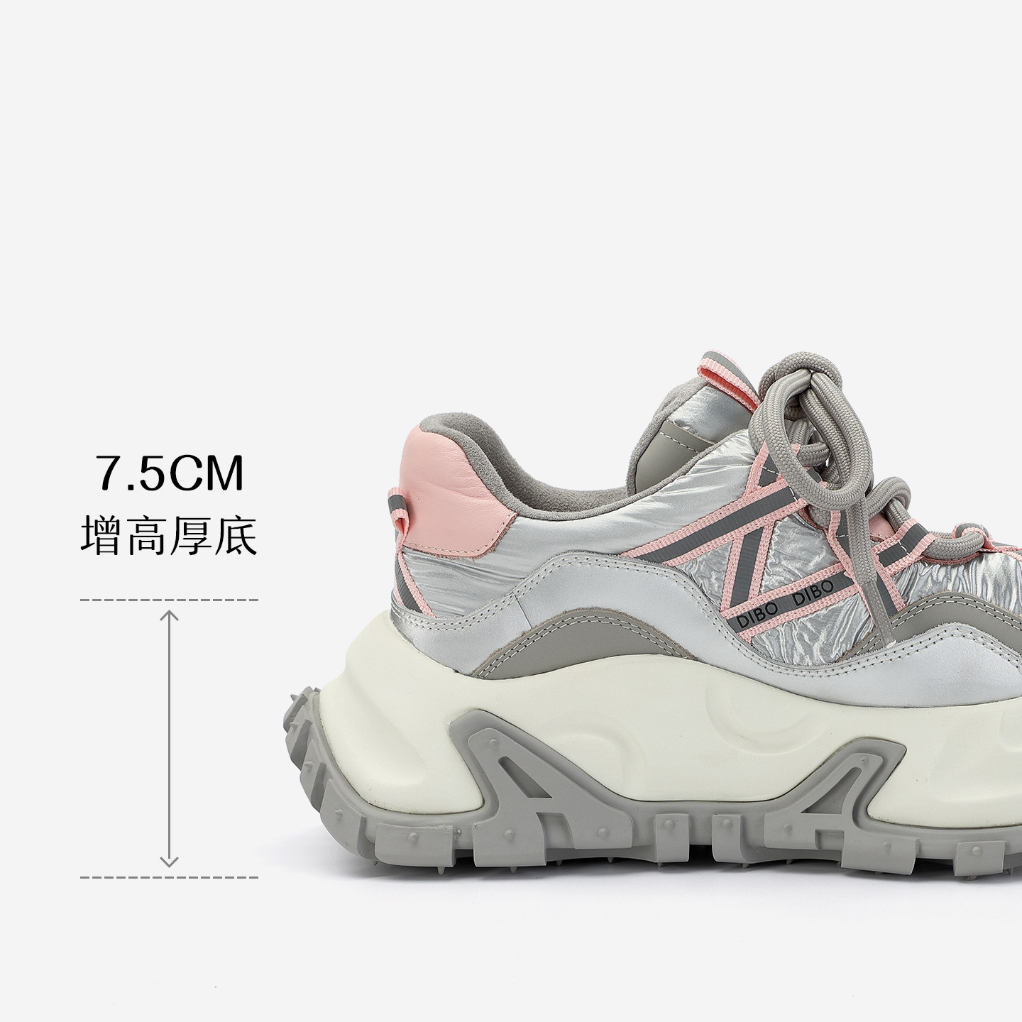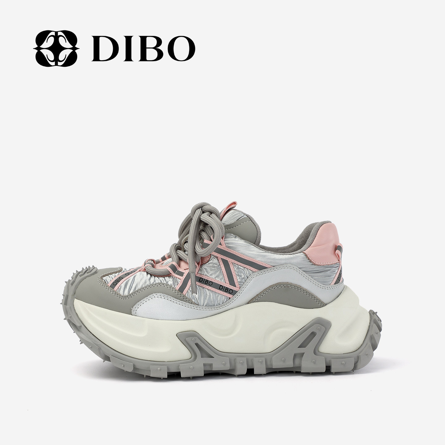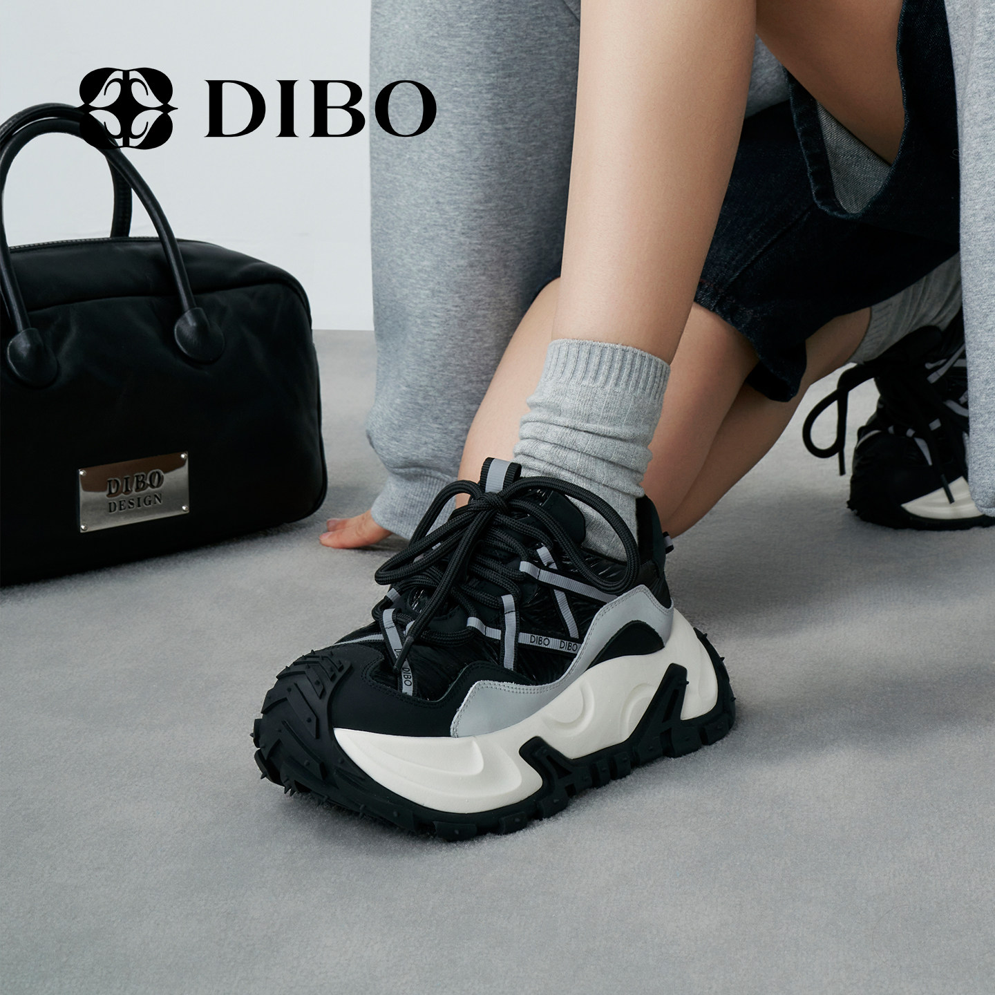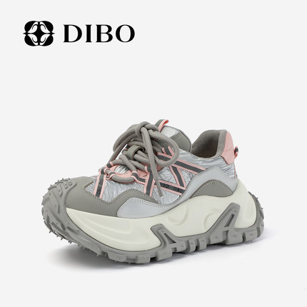 DIBO碲铂商场同款厚底真皮老爹鞋女2025秋季新潮流拼色百搭休闲鞋