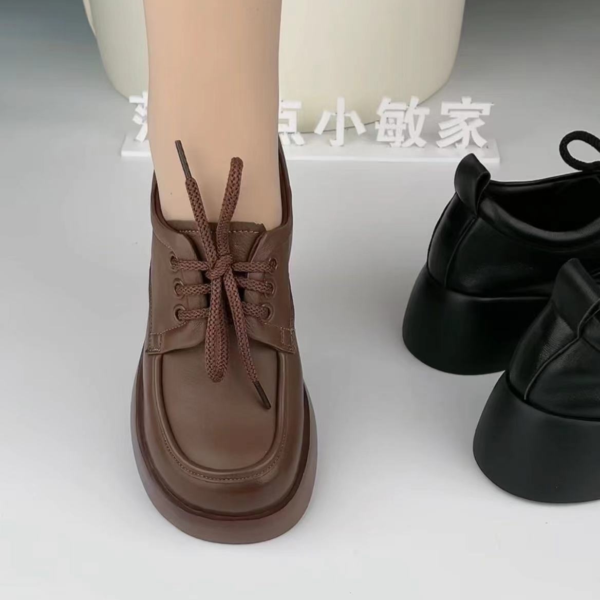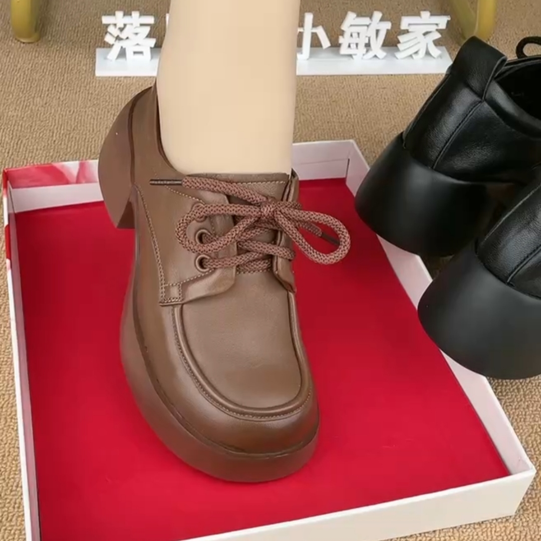 断码清仓真皮软底厚底乐福鞋工作鞋女秋新款粗跟单鞋英伦风小皮鞋