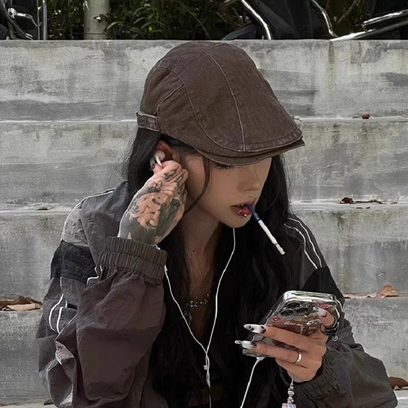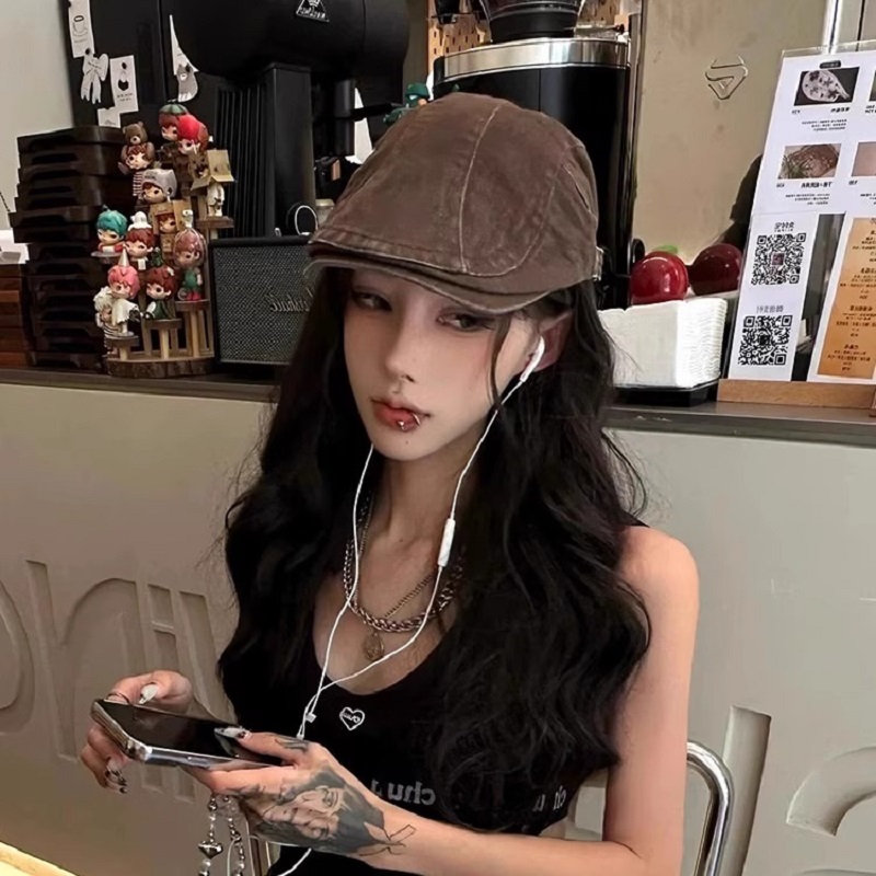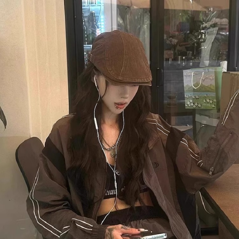 美式复古咖色牛仔前进帽女夏y2k亚比帽子美拉德鸭舌帽棕色贝雷帽