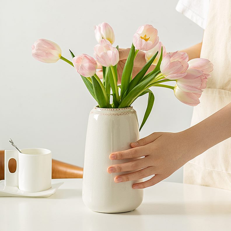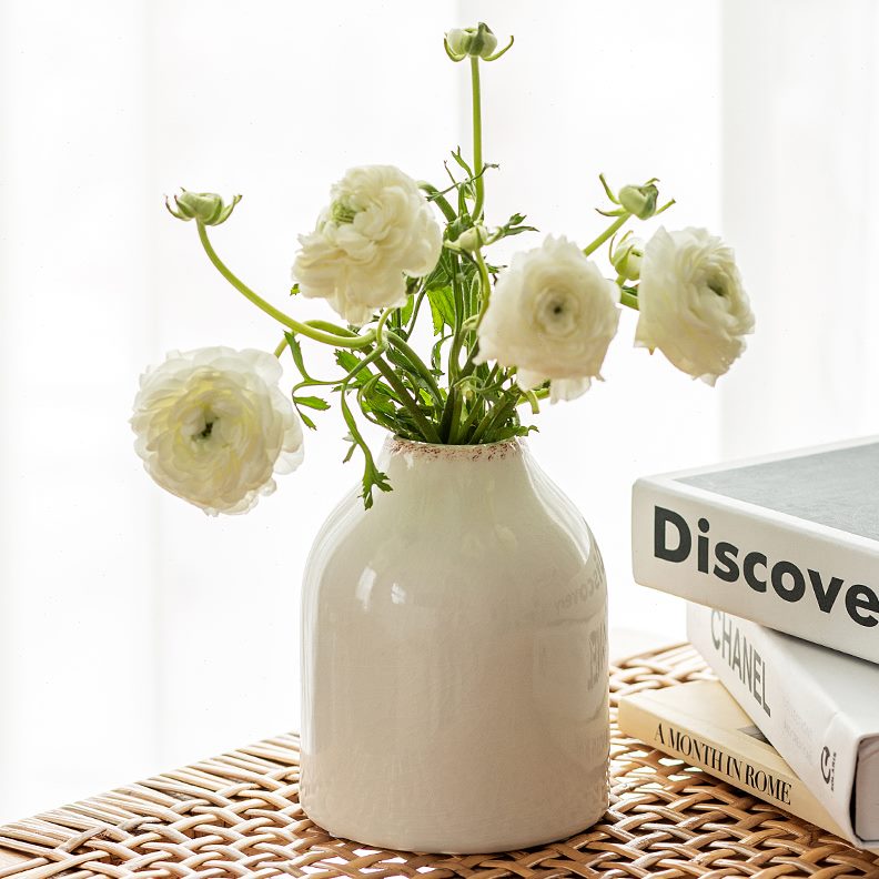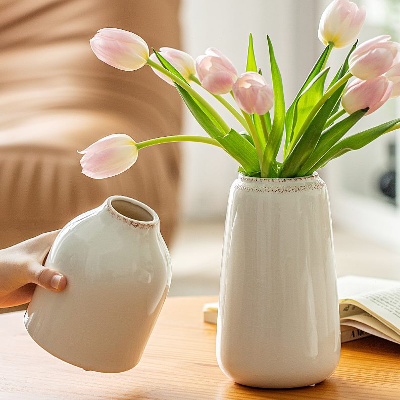 感陶罐摆件高级复古法式小日式欧式简约现代白色花瓶陶瓷插花客厅