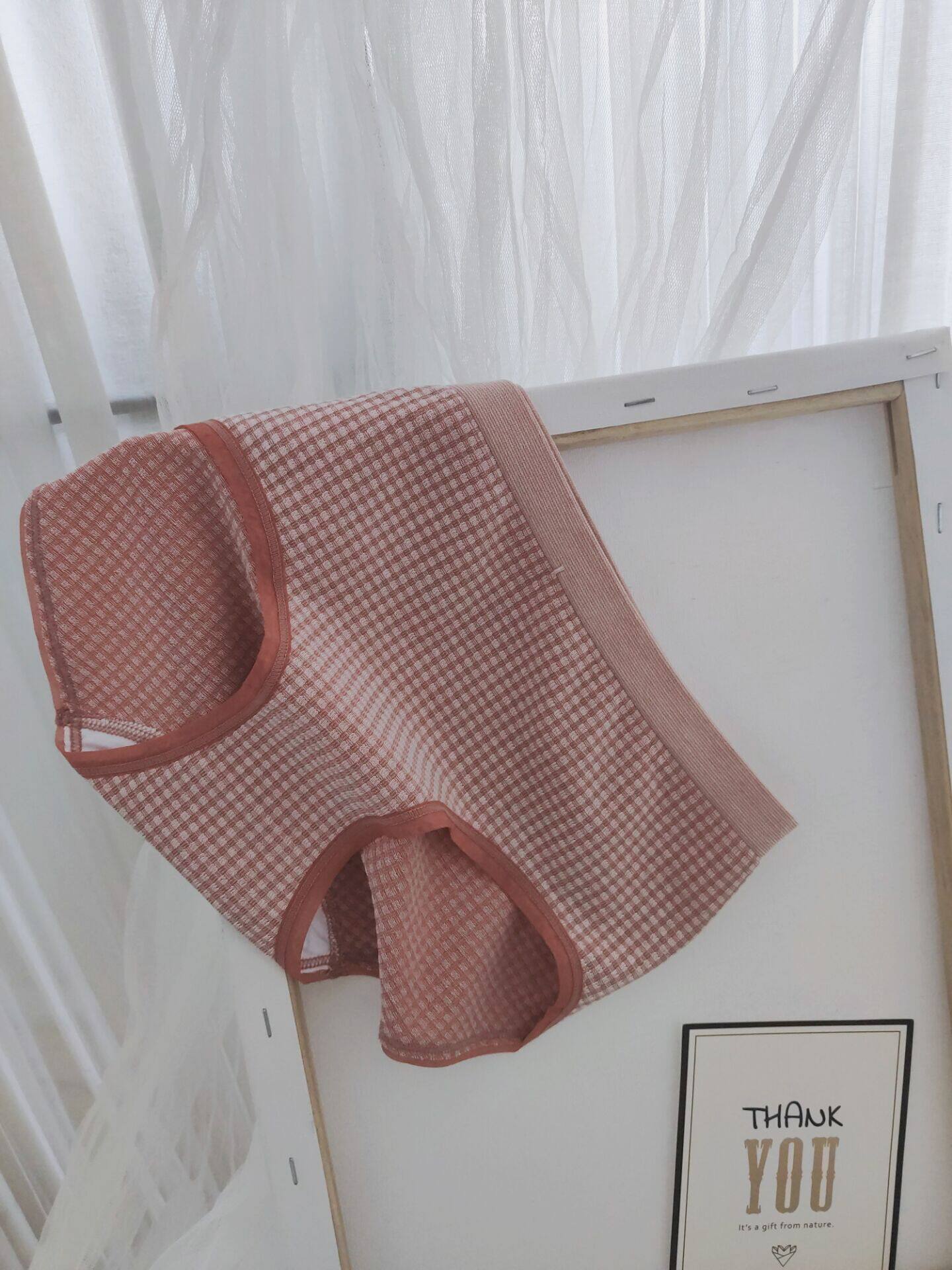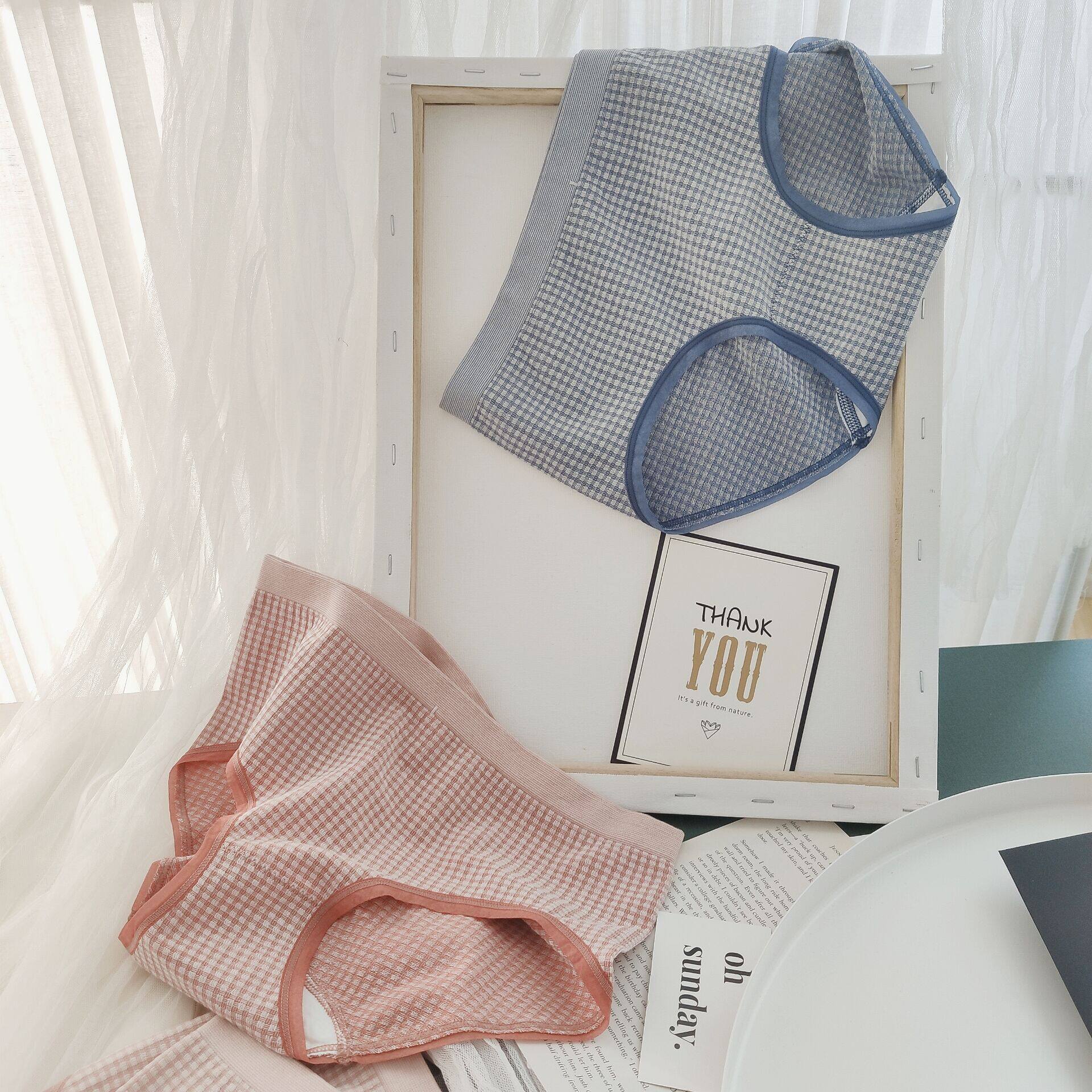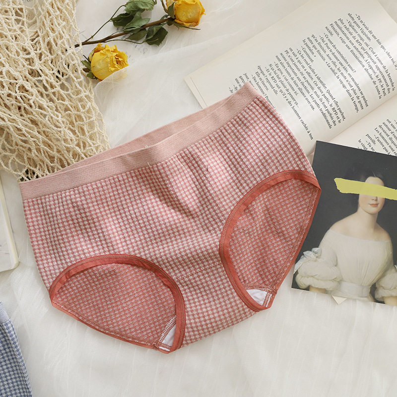 INS格子莫代尔无缝女内裤中腰包臀三角内裤棉档