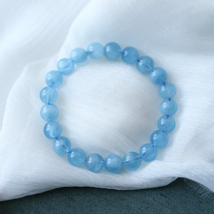 天然巴西进口海蓝宝女款手链手镯 润蓝水晶海蓝宝石单圈手串