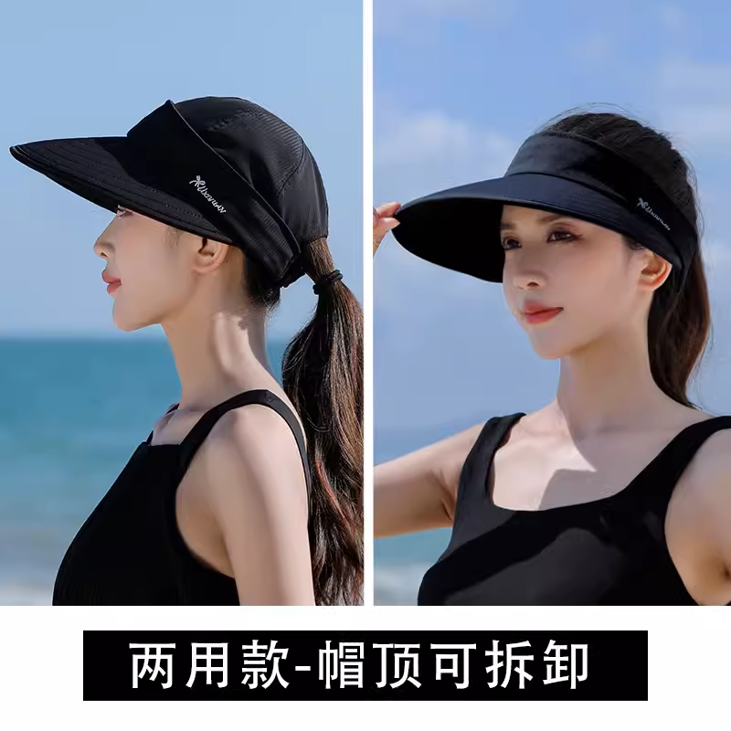 遮阳帽子女夏天骑车不翻防紫外线运动大沿太阳帽空顶防晒鸭舌沙滩