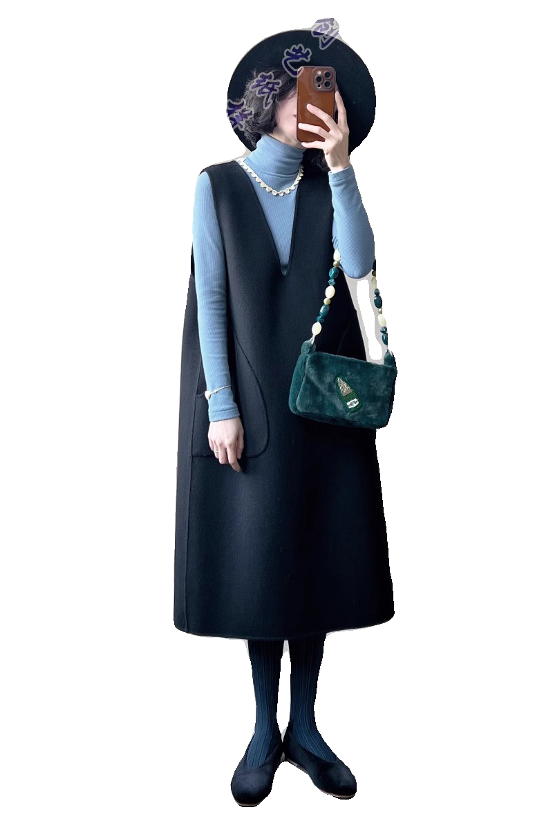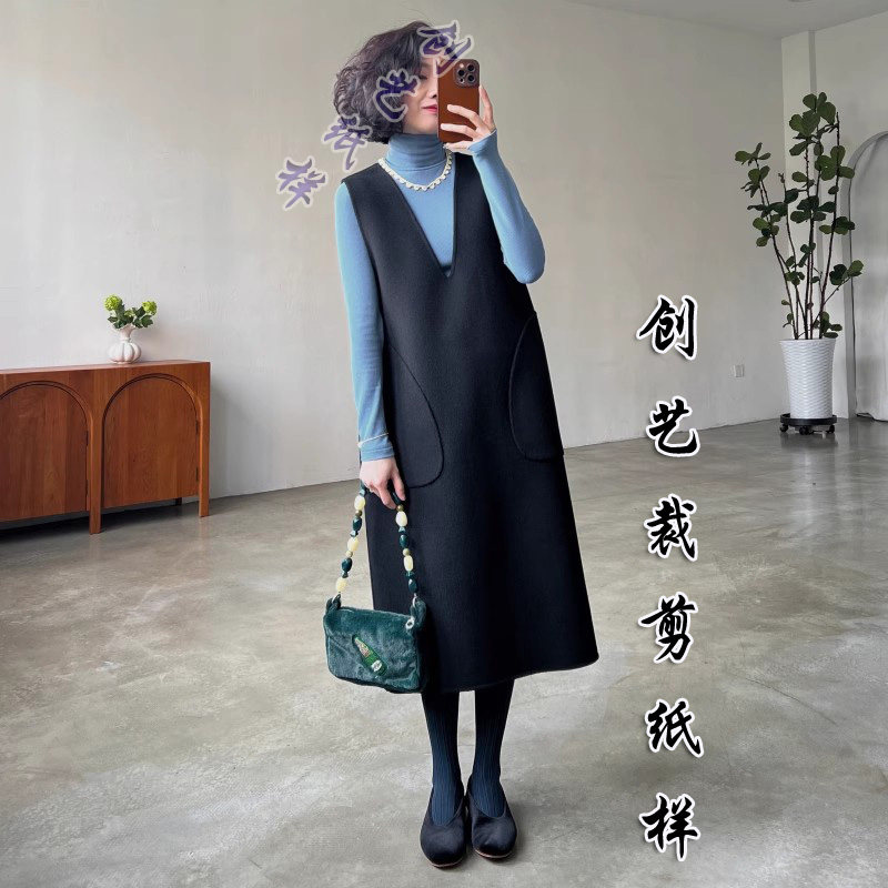 服装纸样 N380小个子女装双面羊绒V领马甲背心连衣裙春秋裁剪板图
