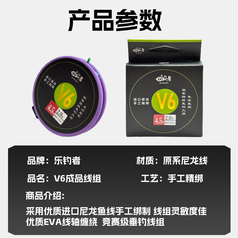 乐钓者朱清清哥V6手工主线组无结金刚结竞技配件原丝尼龙主线组