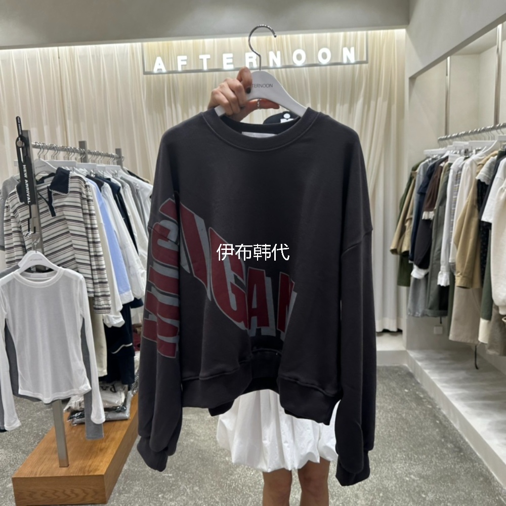 AFTERNOON韩国东大门正品代购25秋款 圆领休闲粗字母宽松套头卫衣