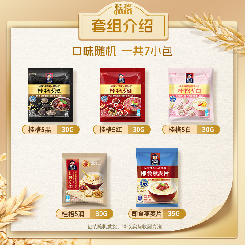 桂格每日麦片7日装5黑5红5白5润即食麦片225g*1袋早餐营养饱腹