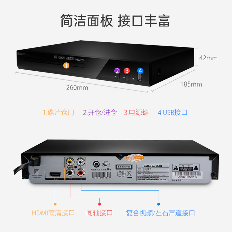 GIEC杰科GK-906家用DVD影碟机evd播放机儿童VCD机高清CD播放器USB