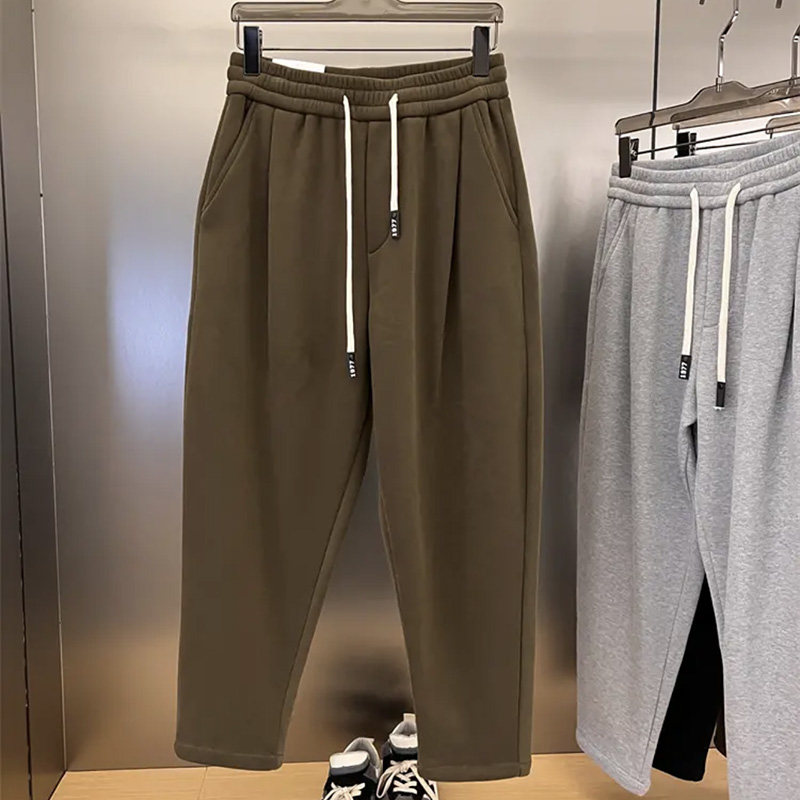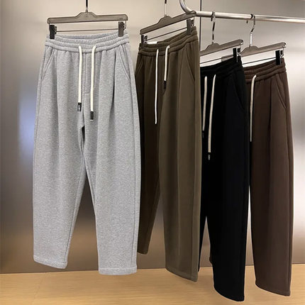 秋冬男士加绒设计师款纯色情侣装百搭宽松阔版宽松萝卜裤哈伦卫裤
