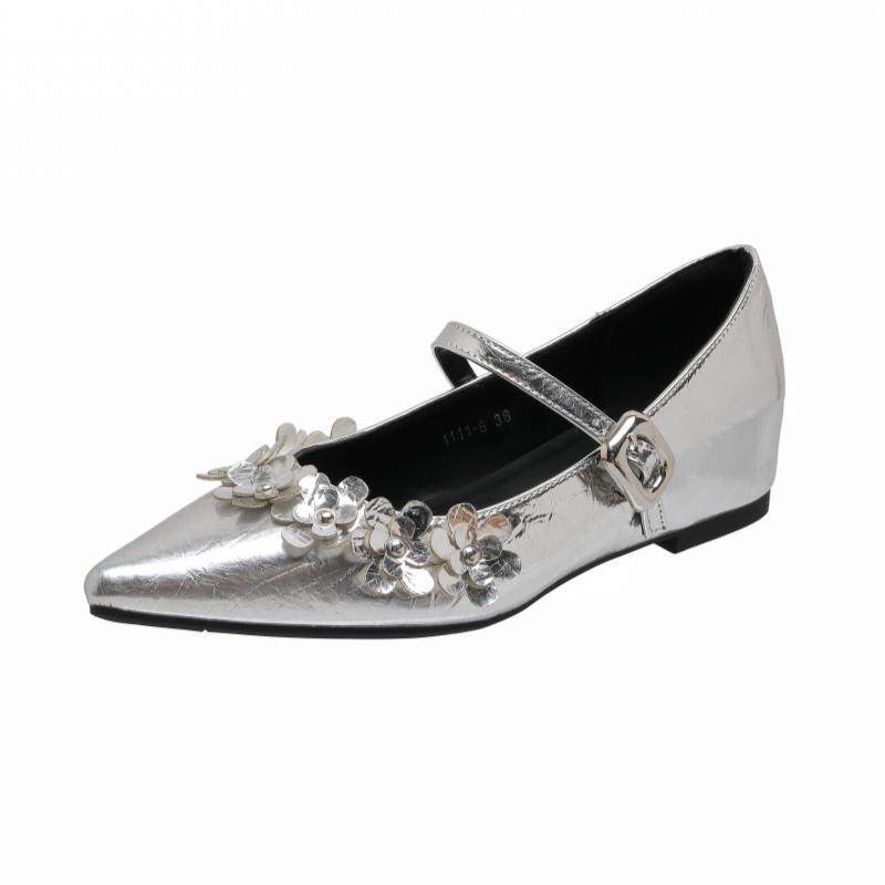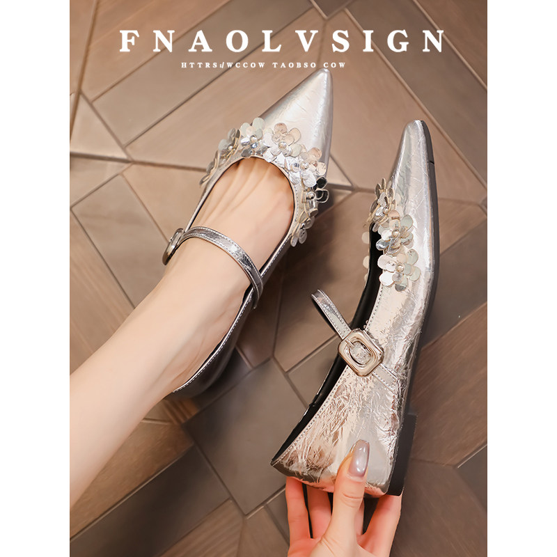 真皮尖头一字带玛丽珍鞋浅口单鞋