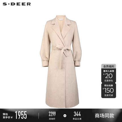【商场同款】sdeer圣迪奥女OL风西装领收腰双面呢大衣S25482502