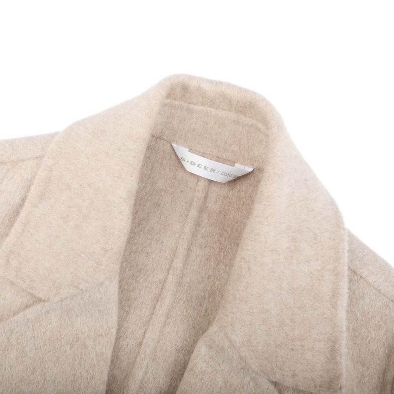 sdeerOL风西装领收腰双面呢大衣