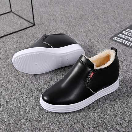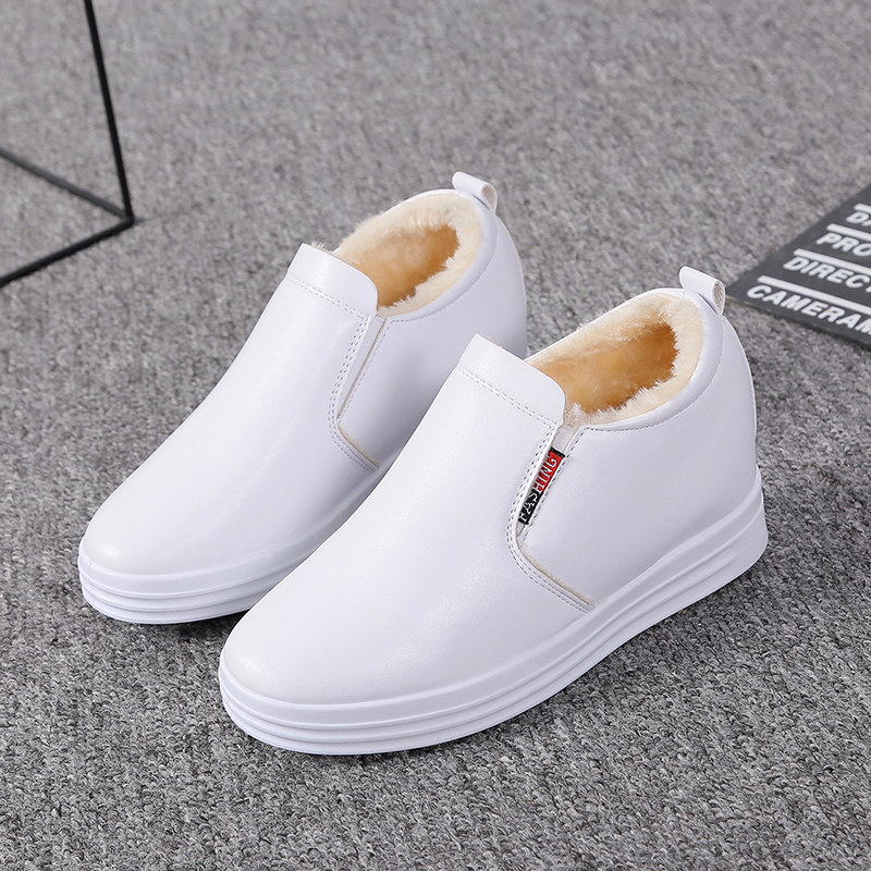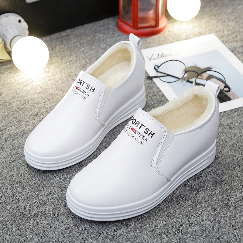 冬季新款加绒加厚小白鞋女内增高厚底百搭一脚蹬懒人休闲女运动鞋