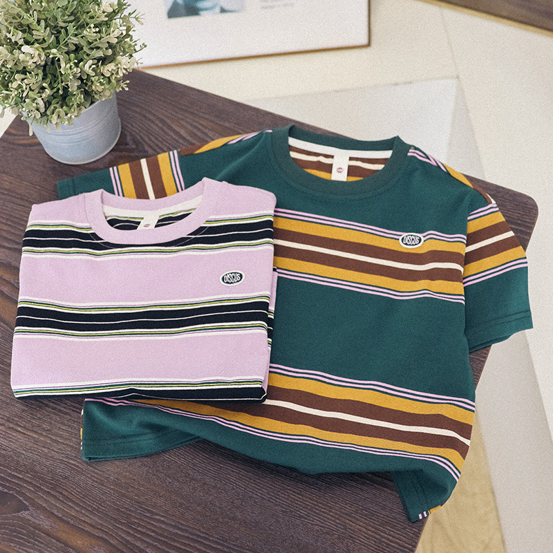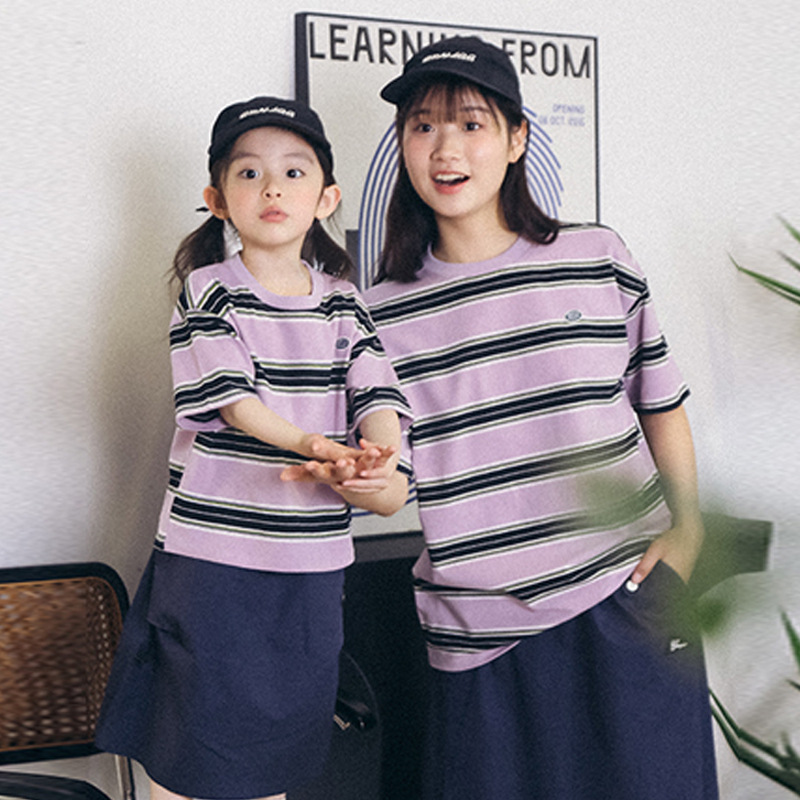 亲子装2025新款夏季条纹短袖T恤